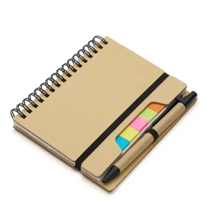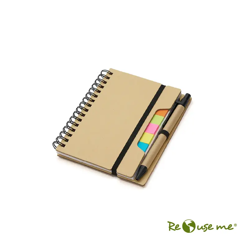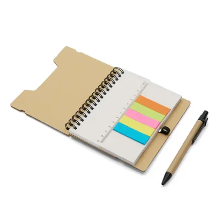 Cuaderno practico anillado. con regla, notas adhesivas y birome. Cuenta con una lapicera, 5 colores de notas adhesivas, 25 unidades de cada una, y una regla de plástico. Todos portables dentro del mismo cuaderno.