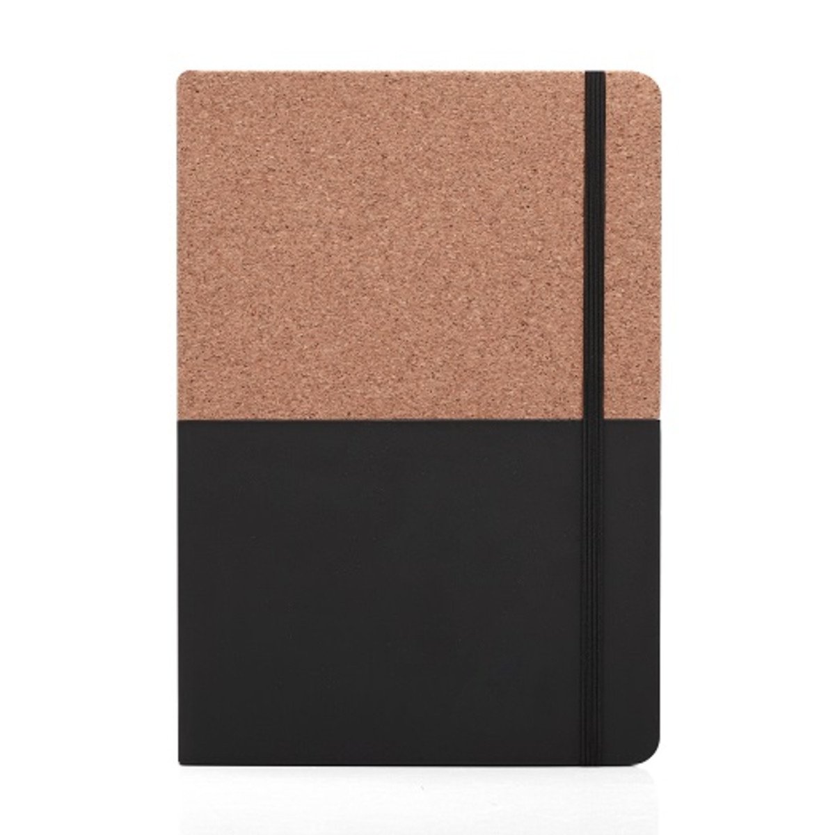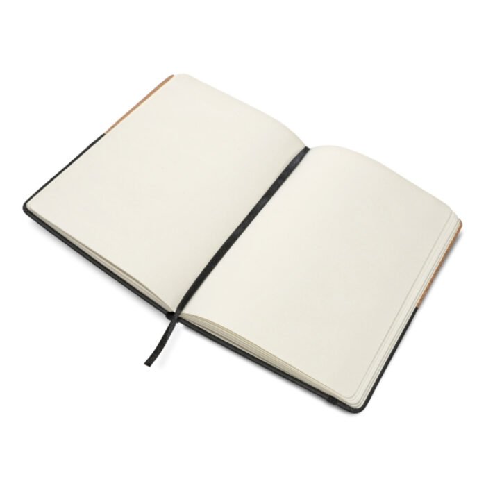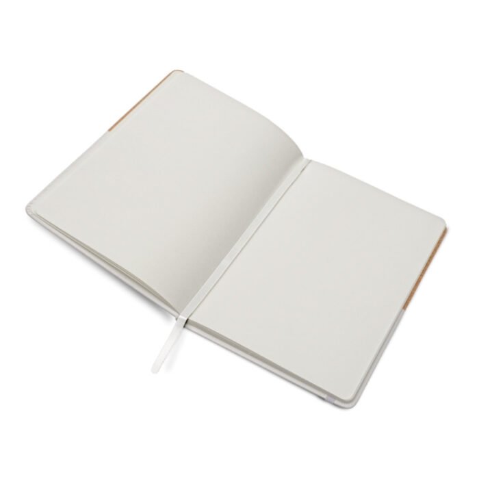 Cuaderno tapa dura forrado mitad en corcho y mitad en eco cuero soft mate.