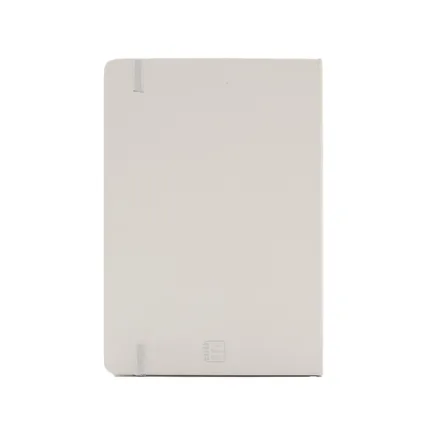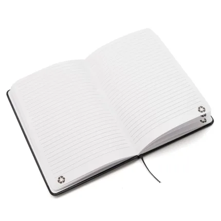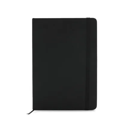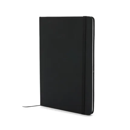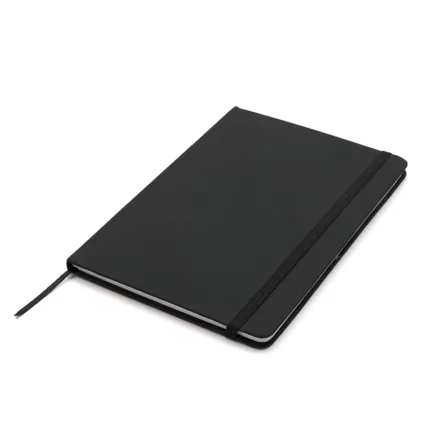 Cuaderno A5 de 64 hojas rayadas confeccionado en RPU. Cuenta con una cinta elástica adherida a la tapa para brindar un cierre seguro. Su peso es de 220 gramos, haciéndolo un producto cómodo de llevar. Ideal para llevar en tu día a día para dibujar o anotar tareas importantes.