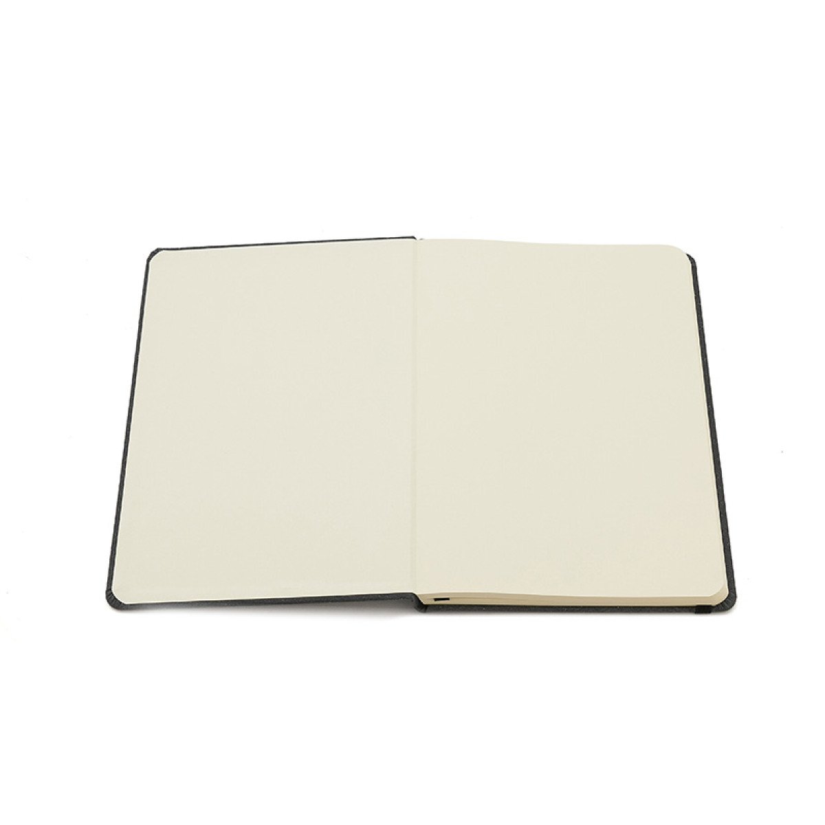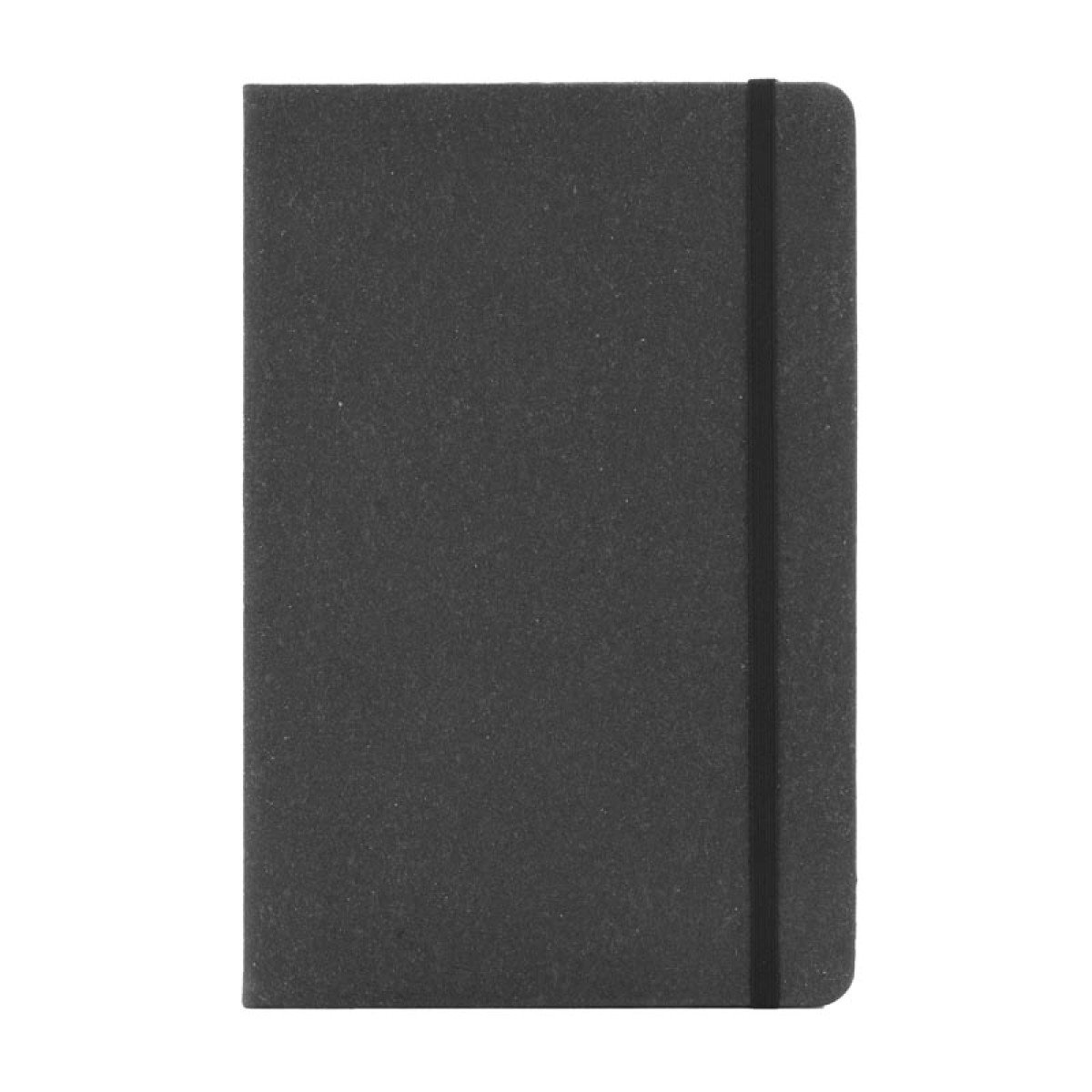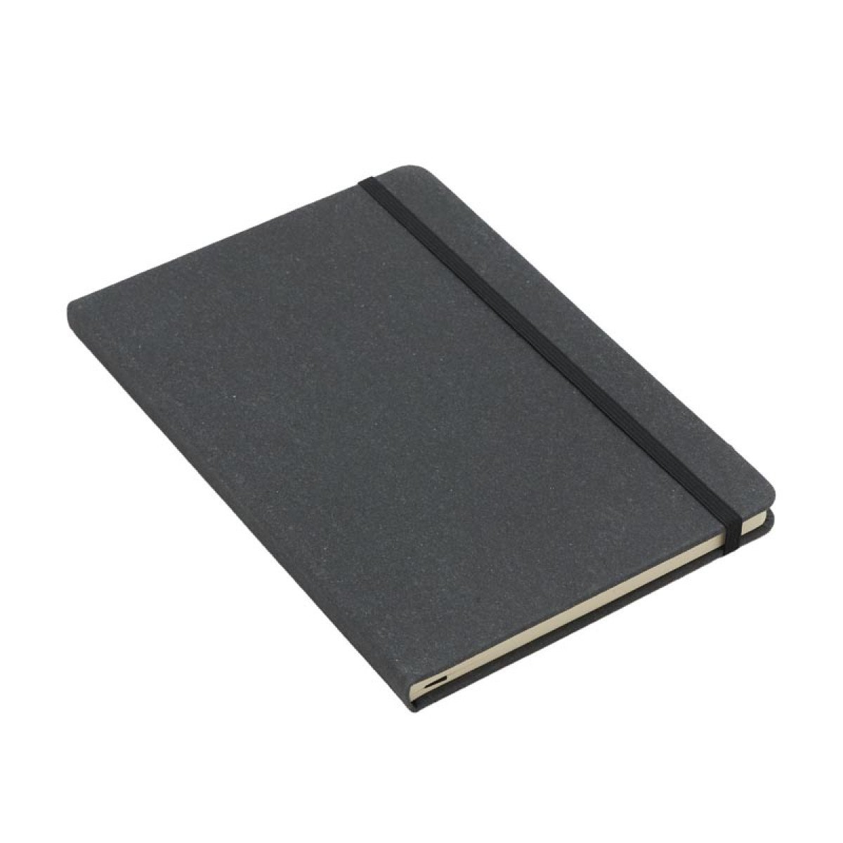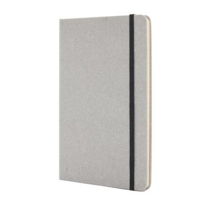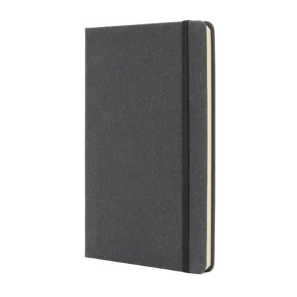 Cuaderno A5 de 80 hojas lisas de 70gr con tapa dura de cuero reconstituido (70% cuero reciclado + 30% latex). Cuenta con cierre elástico y marcador de páginas color negro. Encuadernación cosida.