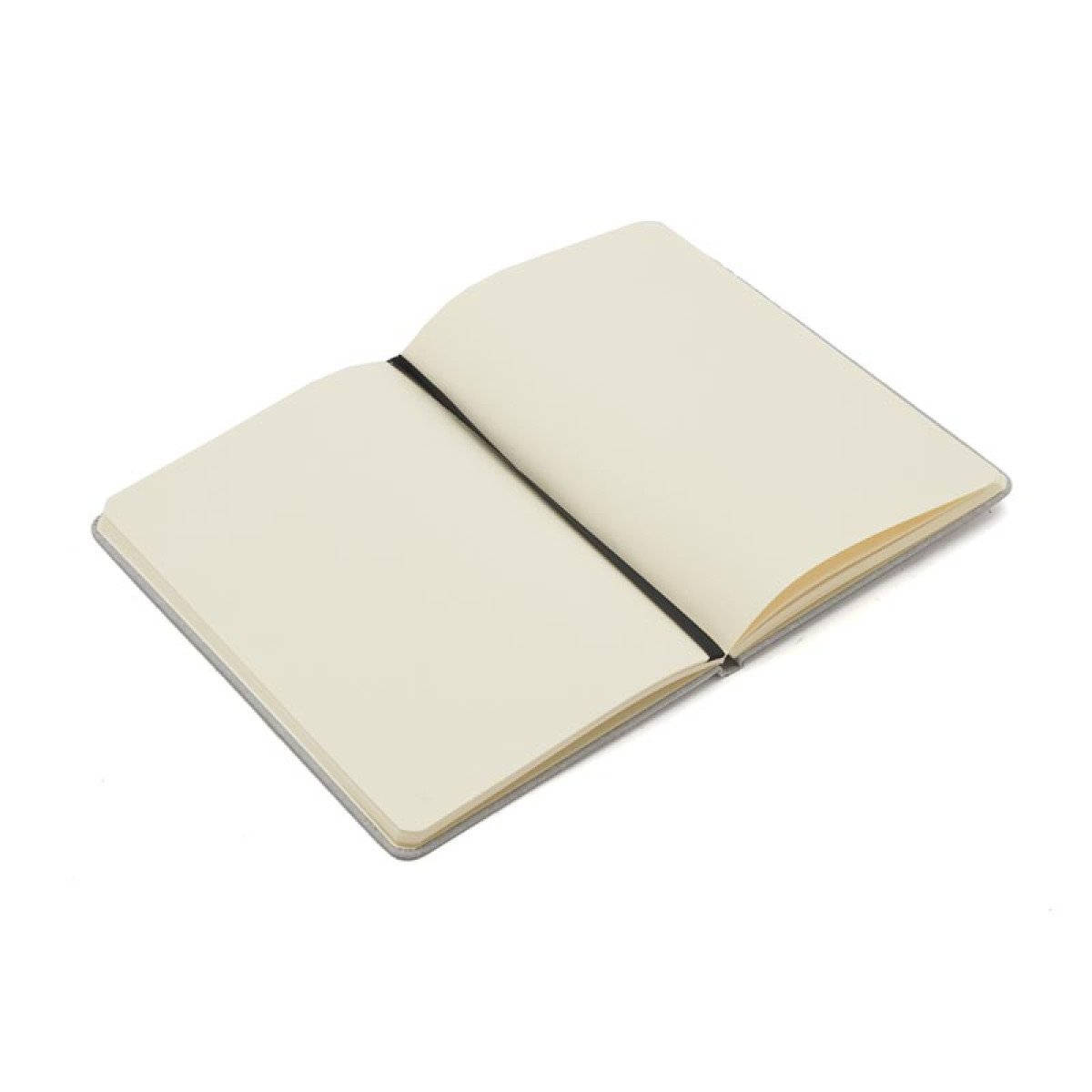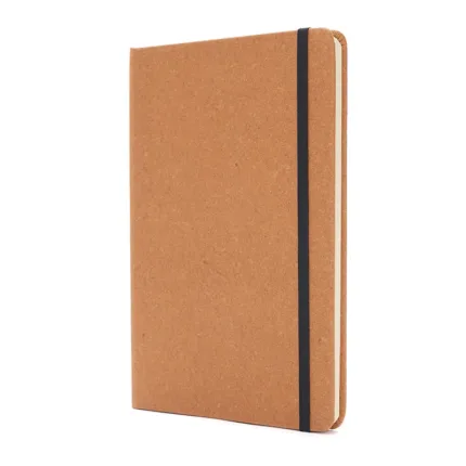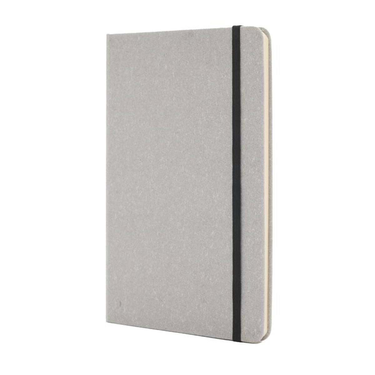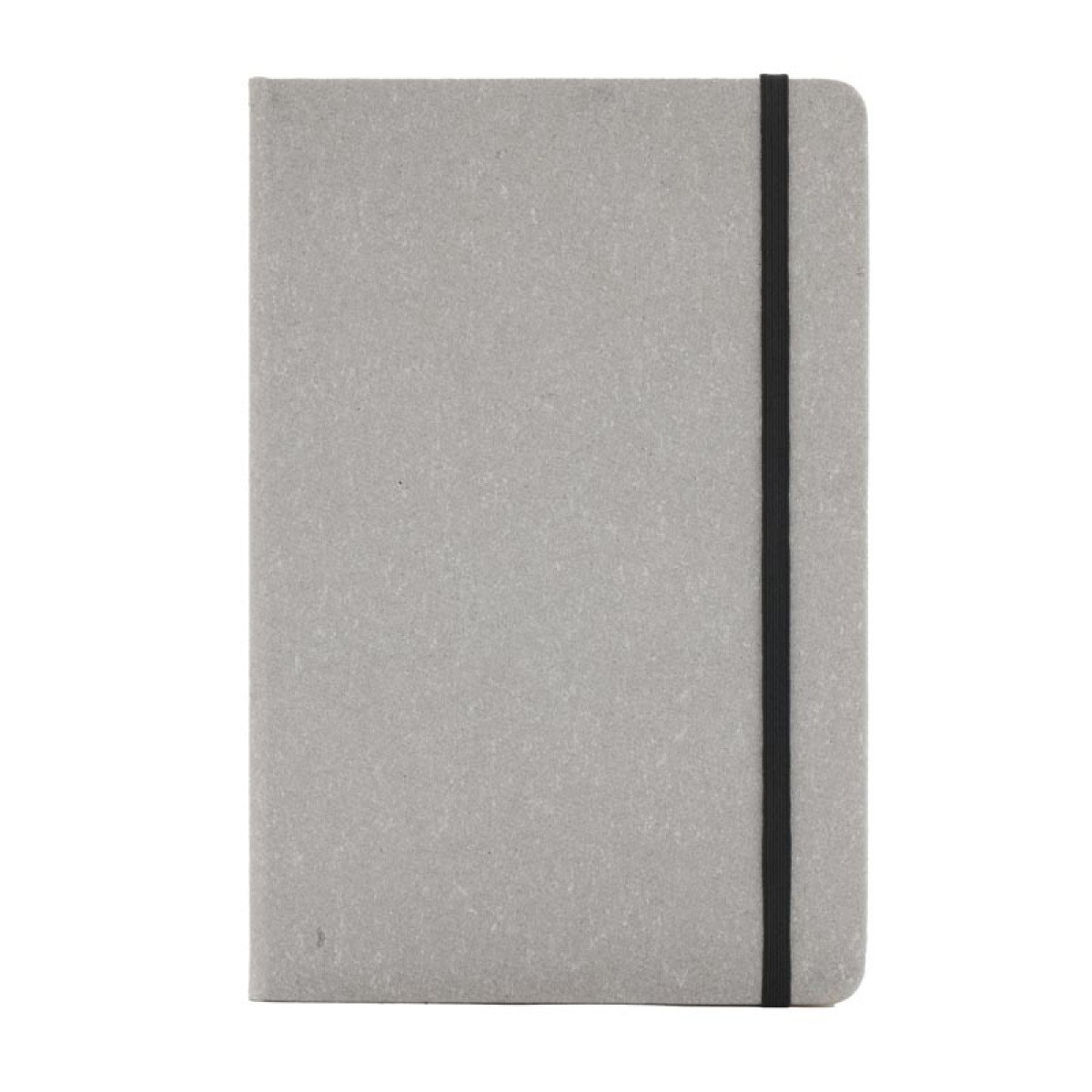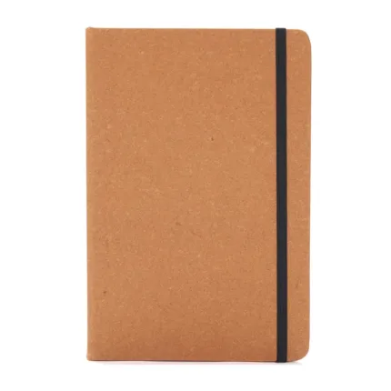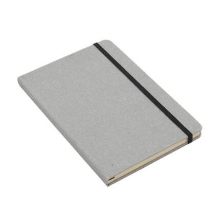 Cuaderno A5 de 80 hojas lisas de 70gr con tapa dura de cuero reconstituido (70% cuero reciclado + 30% latex). Cuenta con cierre elástico y marcador de páginas color negro. Encuadernación cosida.