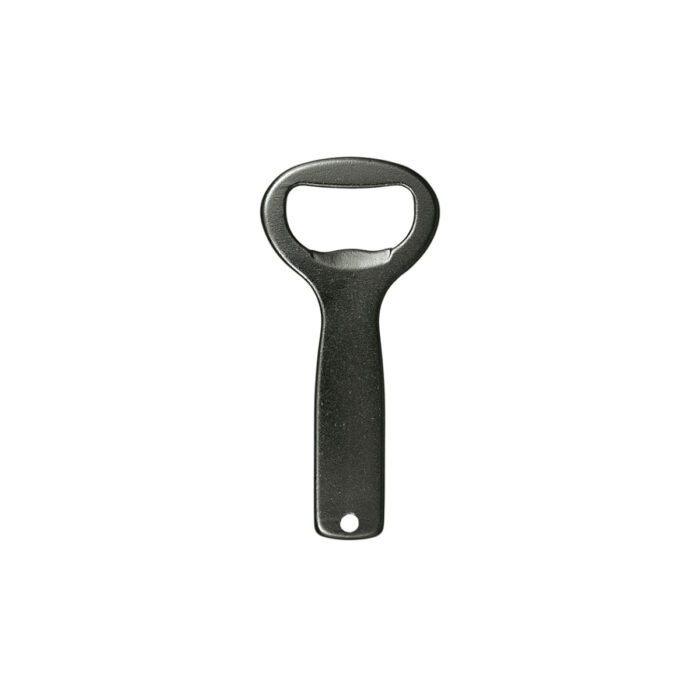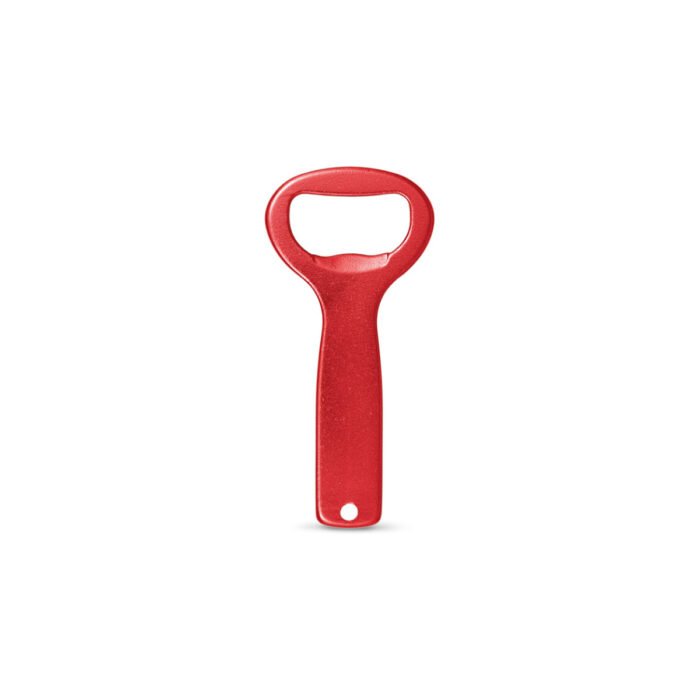 Destapador de aluminio con orificio en la parte superior para poder colgarlo. Medidas:3,9 x 8,3 cm