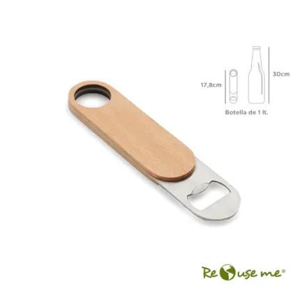 Abrebotellas fabricado en madera de haya y acero inoxidable 420SS.