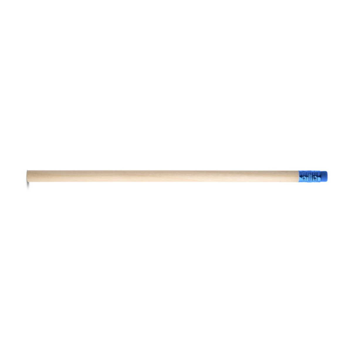 Lápiz ecológico de madera y grafito. Incluye en la parte superior una goma negra recubierta por una férula de metal del mismo color. Tiene una graduación HB y se entrega sin punta. Medidas : ø0,7 x 19 cm