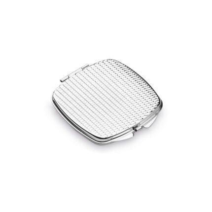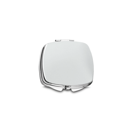 Espejo cuadrado de metal con detalle cromado en una cara del producto. Ideal para maquillaje Compacto, para llevar en necessaire Incluye caja de regalo.