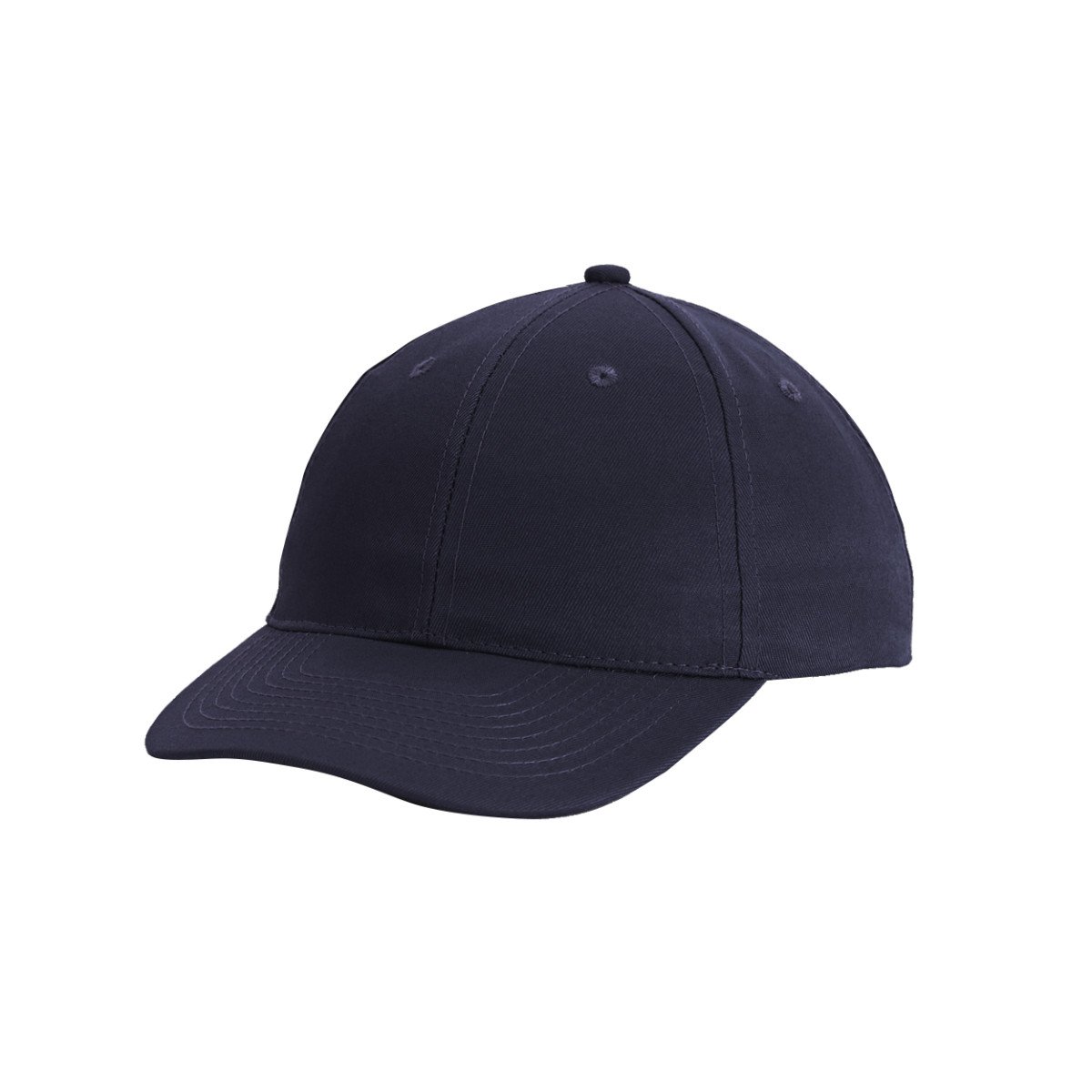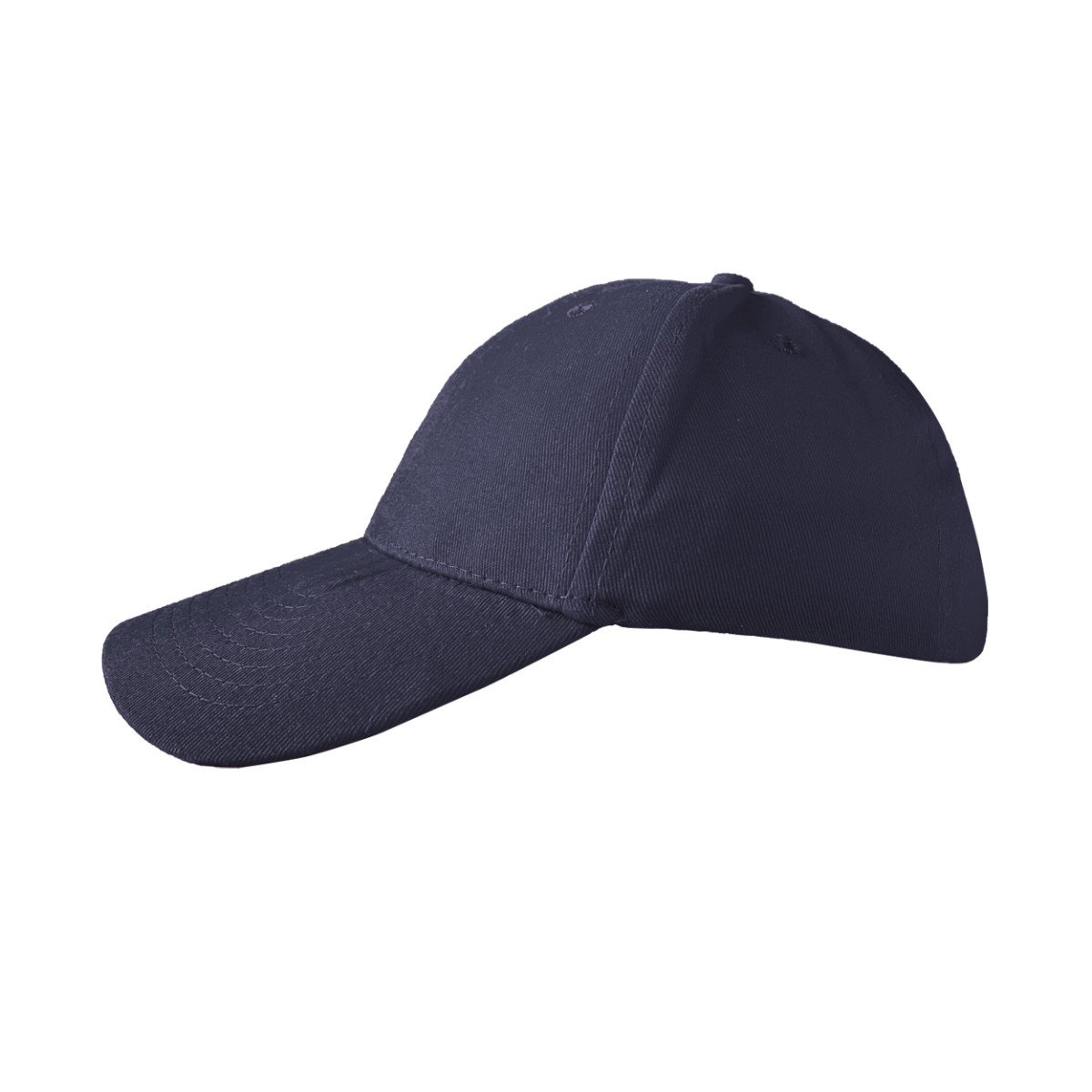 6 gajos. 100% algodón. Hebilla y ojal metálicos. 8 hileras de costuras en la visera. Ojal de respiración bordado.