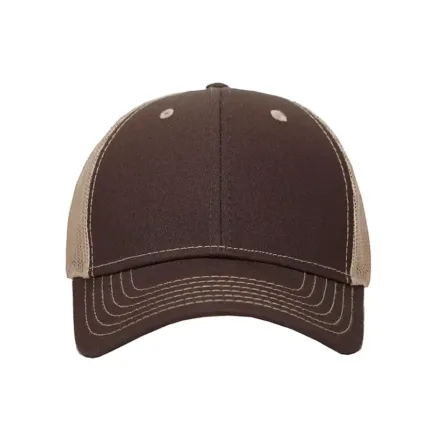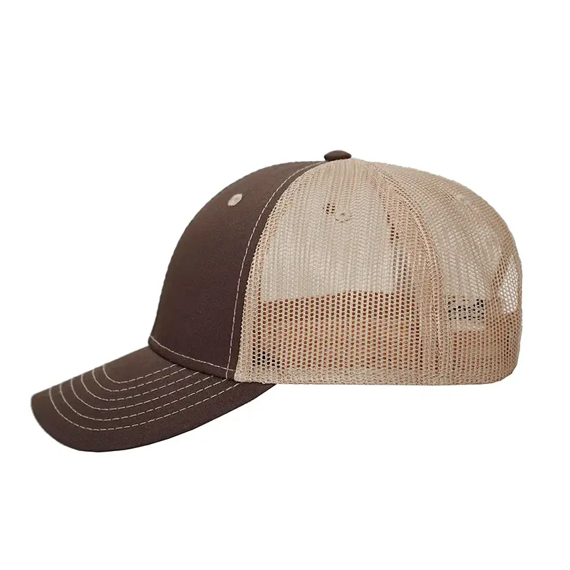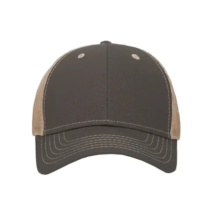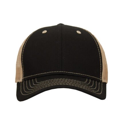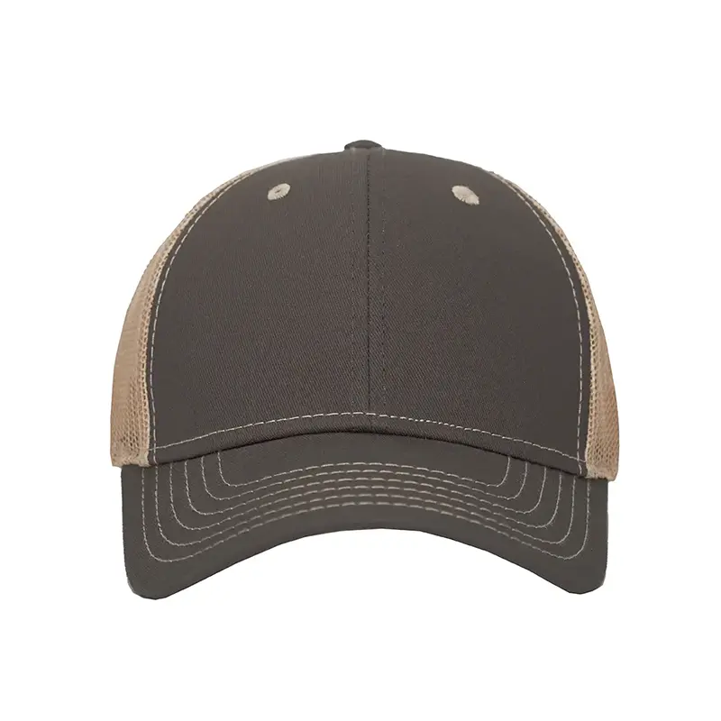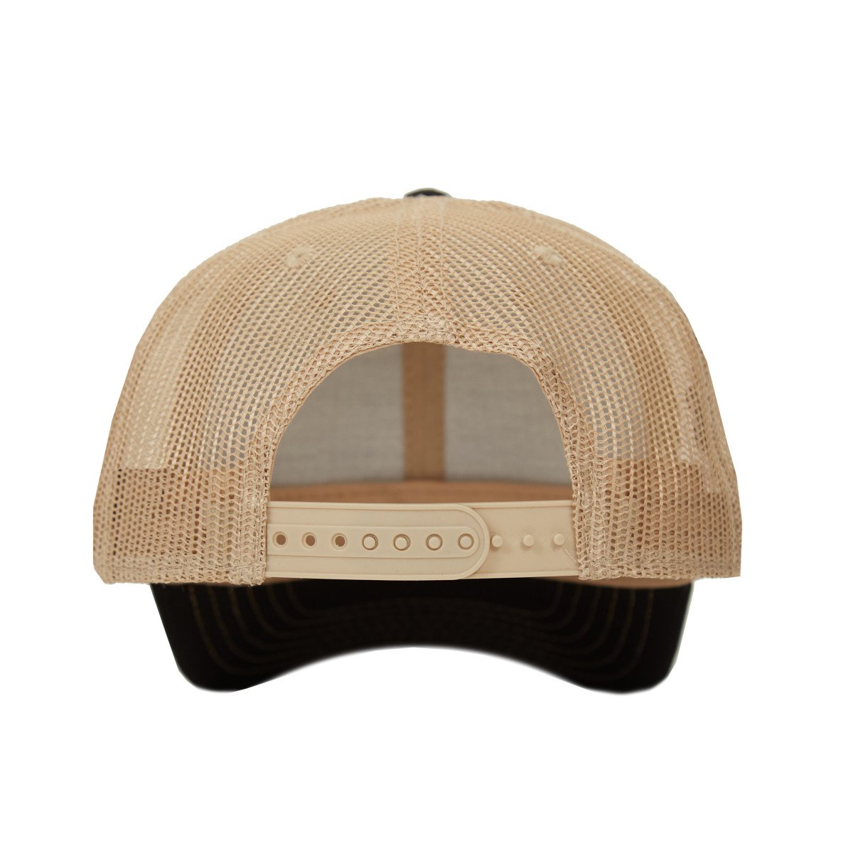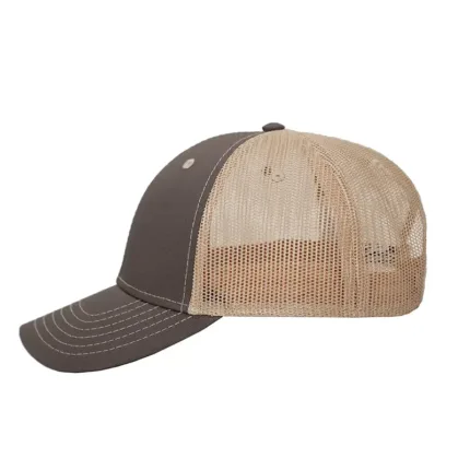 Gorro de 6 gajos con visera. El dorso del del gorro cuenta con diseño de tela de red de color kaki y ajuste con broche. Posee un sticker metalizado en la visera. Slazenger.