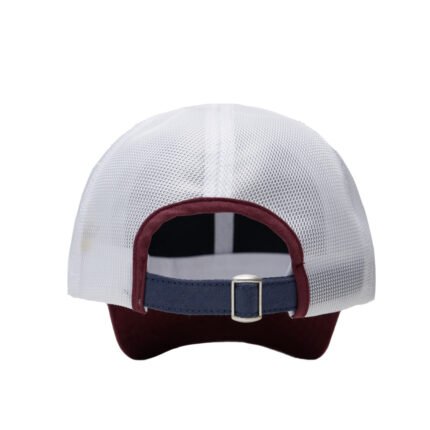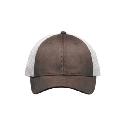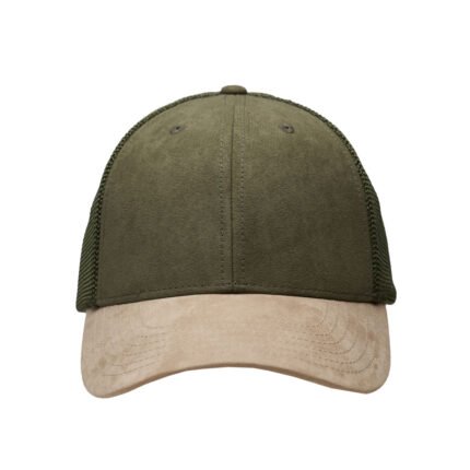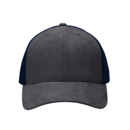 Gorro de 6 paneles de algodón símil gamuza y mesh. Cierre hebilla metálica y tira de símil gamuza. Sticker metalizado en visera.