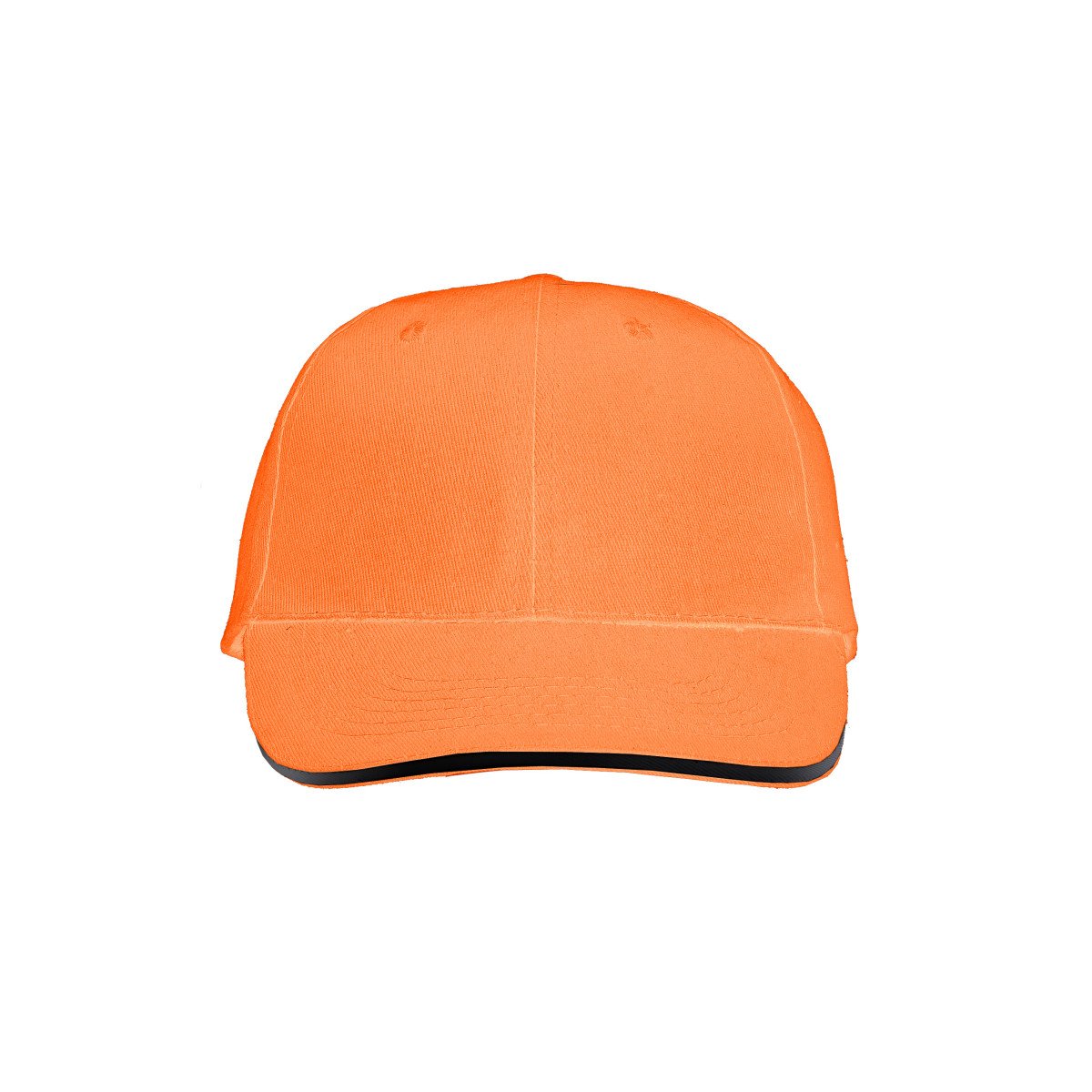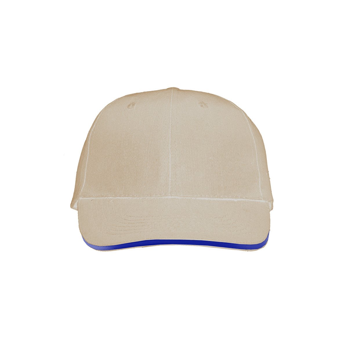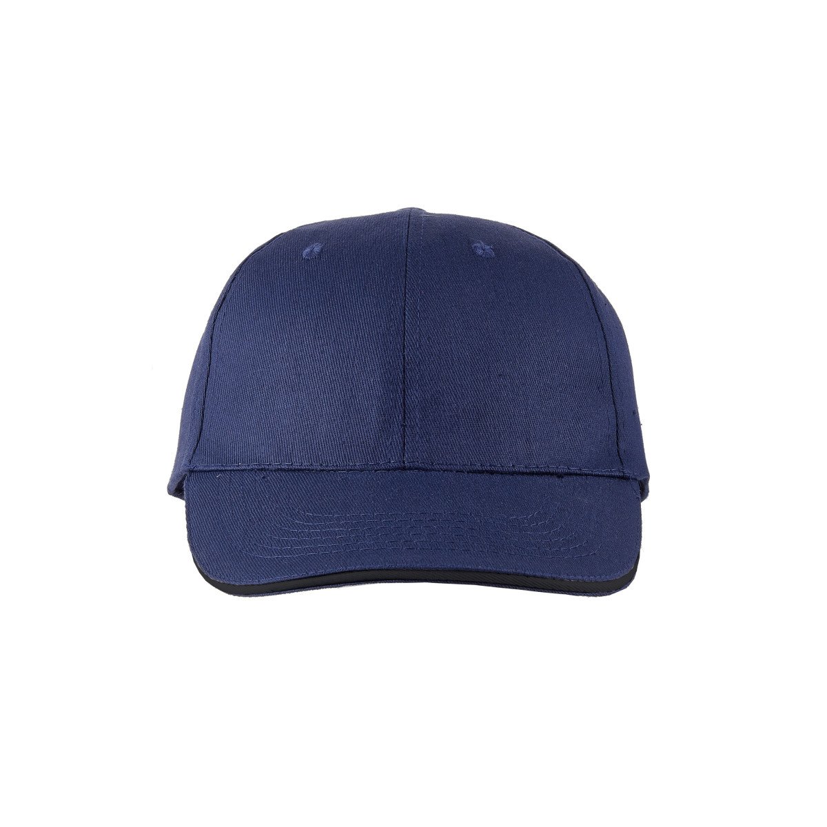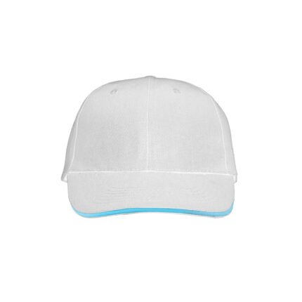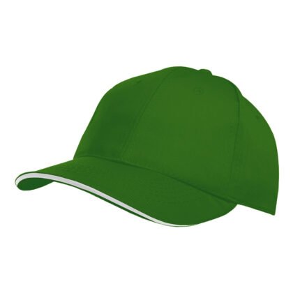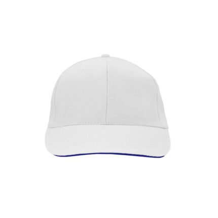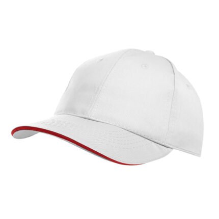 Gorro de gabardina de 6 paneles, con vicera tipo sandwich en colores combinados, y cierre con velcro. Material: 100% algodón.