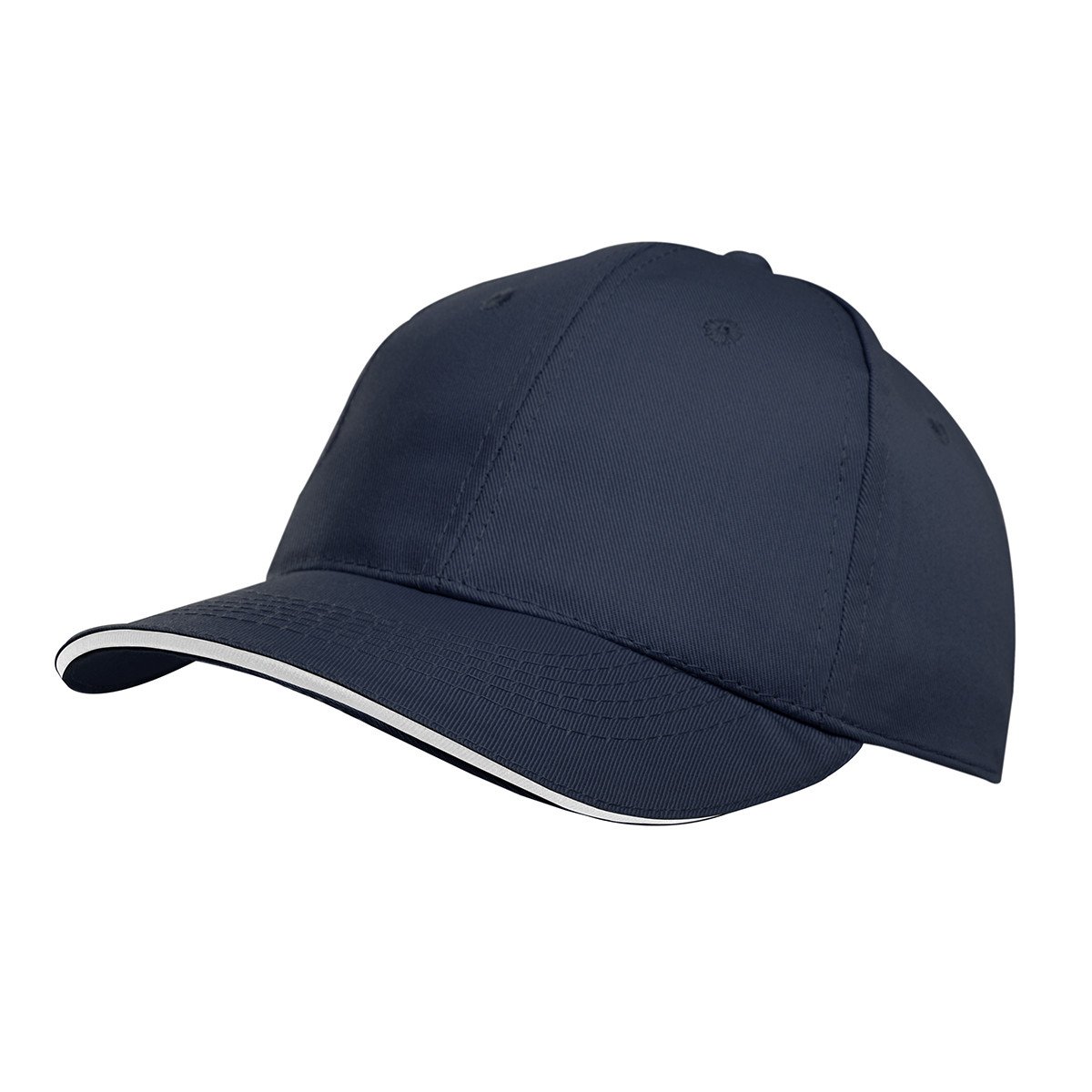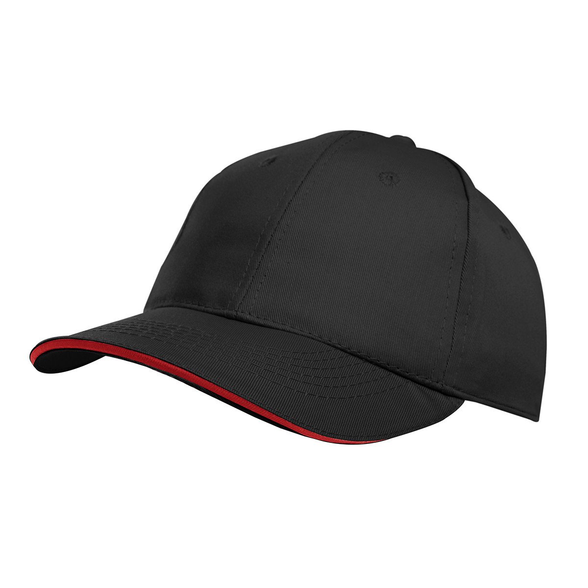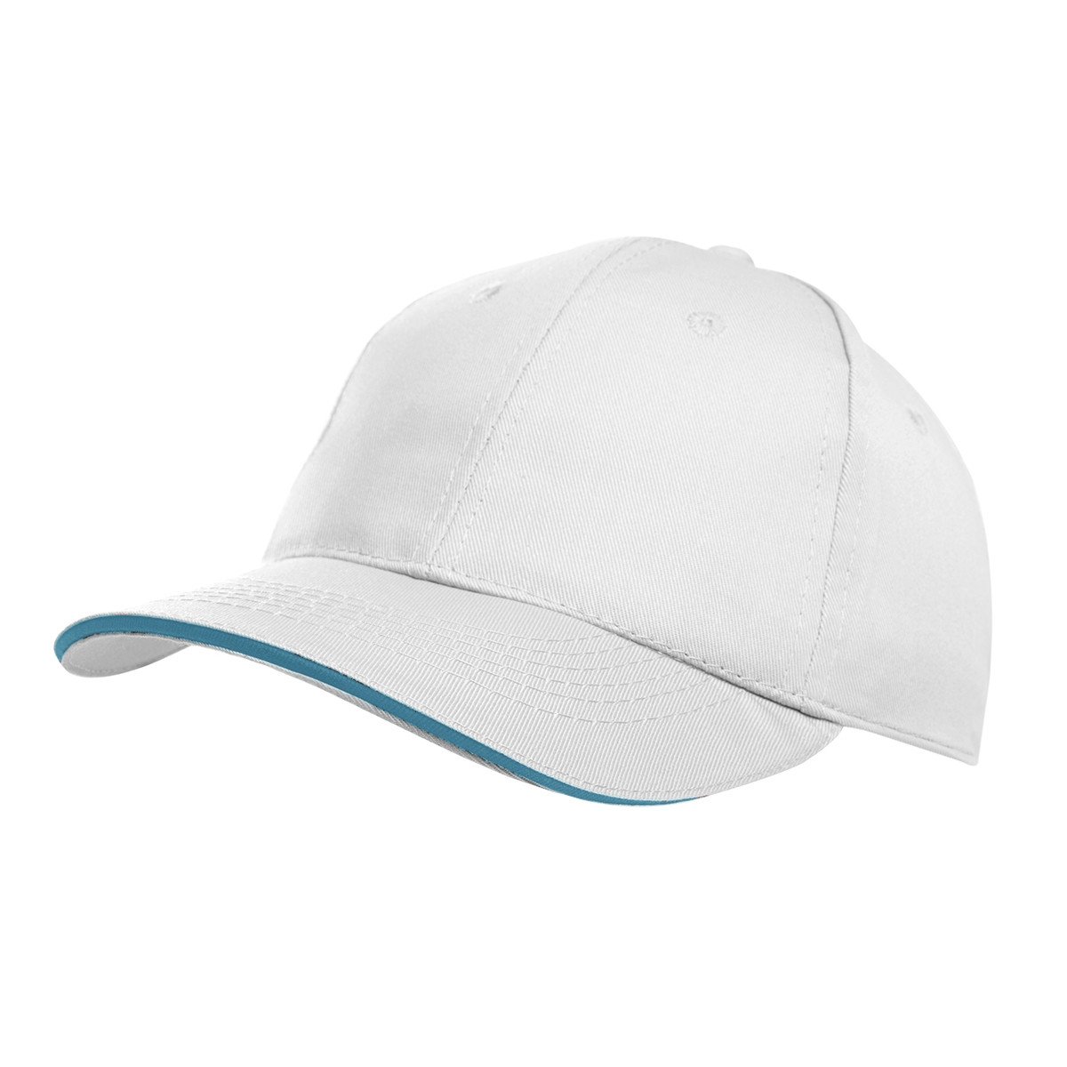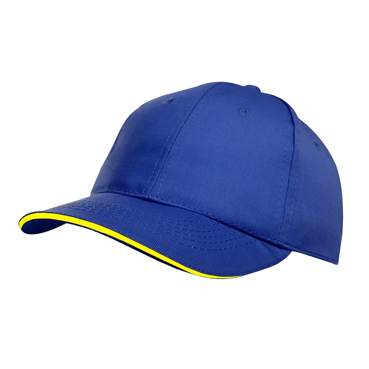 Gorro de gabardina de 6 paneles, con vicera tipo sandwich en colores combinados, y cierre con velcro. Material: 100% algodón.