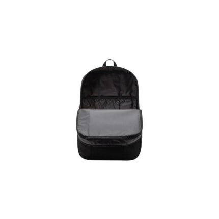 Mochila confeccionada en poliéster 600D 100 % reciclado (excluyendo herrajes). Interior con forro a rayas tono sobre tono, también 100 % reciclado. Compartimento acolchado y suspendido para notebook de 15″/16″. Cierre principal con cierre de cremallera.Comodidad garantizada gracias a las correas acolchadas y ajustables para los hombros. Bolsillo frontal con cierre y tirador con cordón anudado, con organizador interno y clip para llaves. Bolsillo lateral para botella de agua y funda lateral para objetos de rápido acceso.