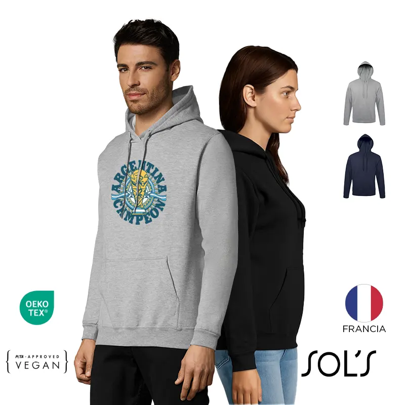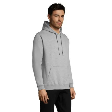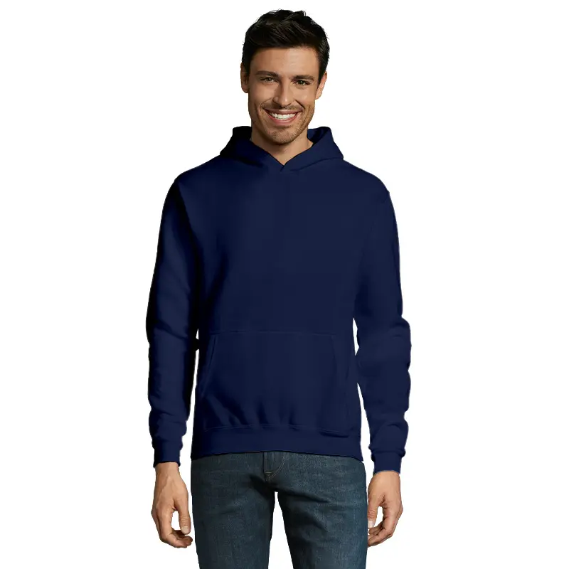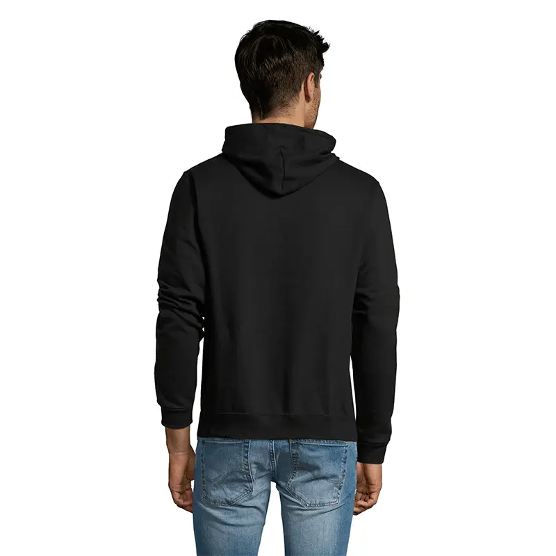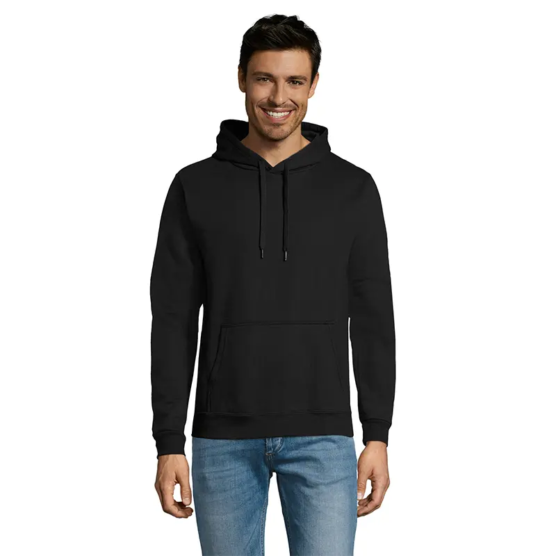 Hoodie de frisa 50% algodón y 50% poliéster de 280g, tipo canguro unisex con capucha.