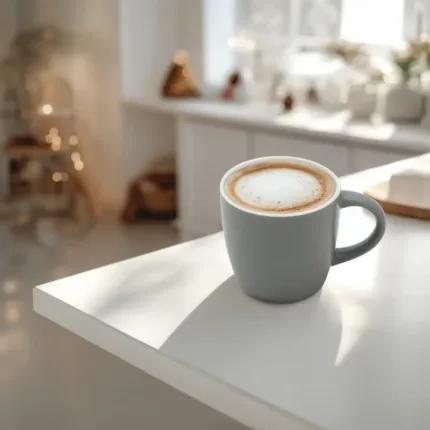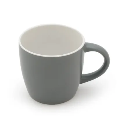 Taza de cerámica color gris con interior blanco. Su diseño minimalista lo convierte en el compañero perfecto para cada mañana. Con una capacidad de 280 ml, es ideal para café, té o cualquier infusión.