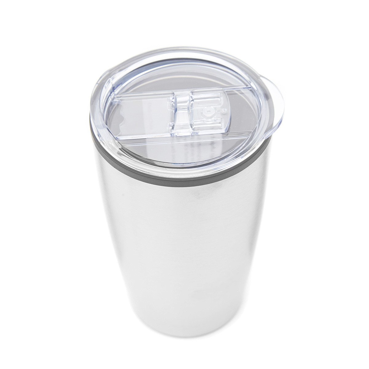 Jarro térmico realizado en acero inoxidable, con tapa cristal clear y base antideslizante.