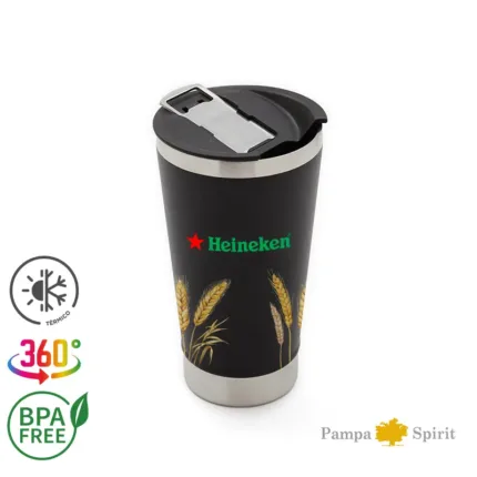 Jarro de 600 ml fabricado en doble pared de acero inoxidable, diseñado para mantener la temperatura ideal, ya sea fría o caliente. Su tapa de PP incluye un destapador de botellas, combinando estilo y funcionalidad, perfecto para cualquier ocasión.