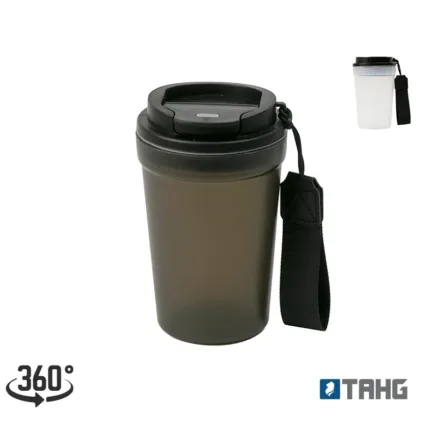 Jarro de polipropileno con tapa y correa. Cuenta con tapa ajustable, correa para transporte y diseño ergonómico. Es ideal para transportar bebidas calientes o frías en la oficina, durante viajes o actividades al aire libre gracias a su diseño práctico y resistente.