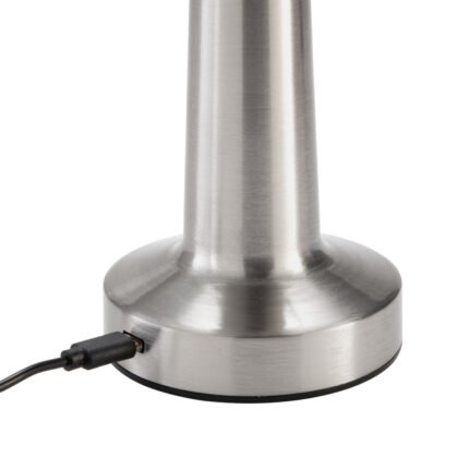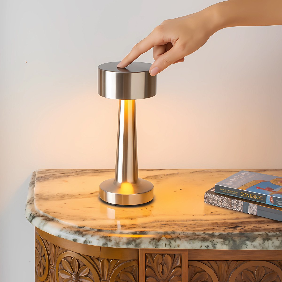 Tres modos de luz para iluminar tu espacio con estilo y versatilidad.Lámpara. Luz led. Botón táctil de encendido/apagado que regula la intensidad y cambia tres modos de luz (cálida, blanca y blanca cálida). Pintura con acabado mate (color negro) y con acabado brillante (plata y cobre). Batería de litio recargable. Conexión USB-C. Incluye cable de carga color negro.Medidas: Ø 9,5 x 21,5 cm.
