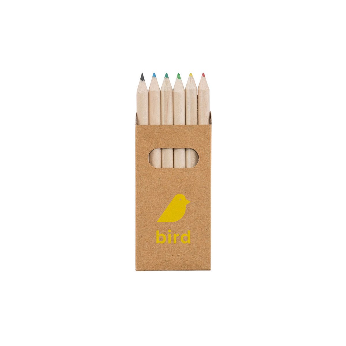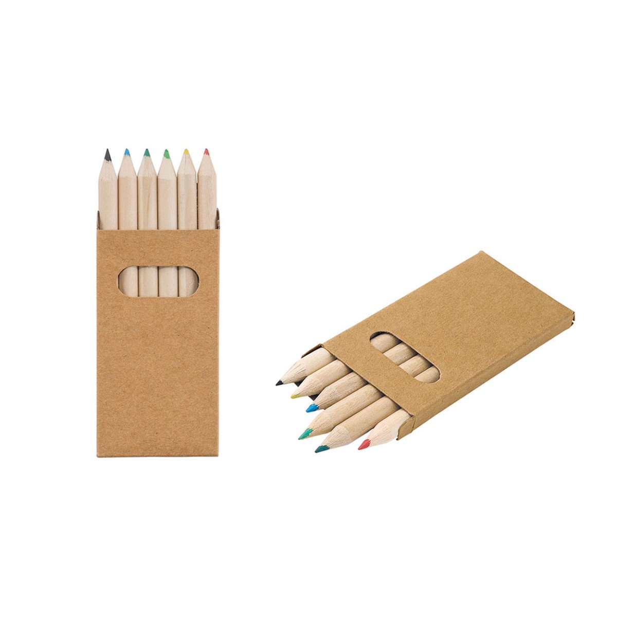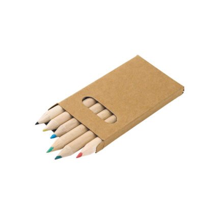 Caja de cartón con 6 lápices de colores mini para pintar.