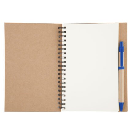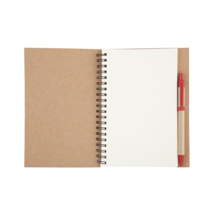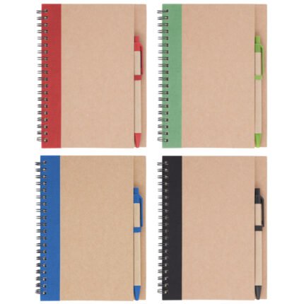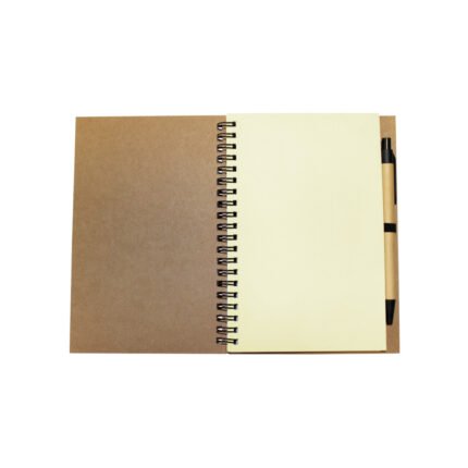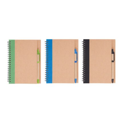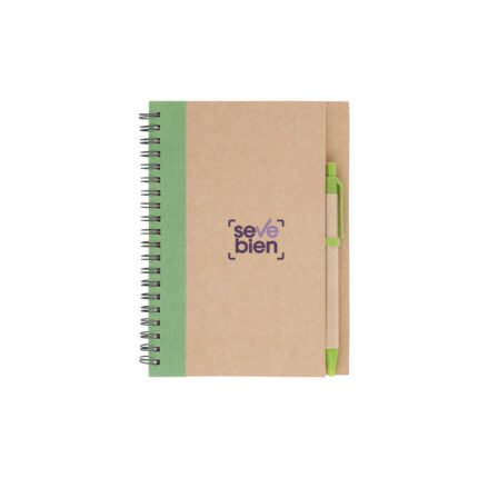 13,8 x 18 x 1,5 cm Elaborada con papel reciclado. Incluye bolígrafo biodegradable. Espiralado. Contiene 70 hojas lisas.