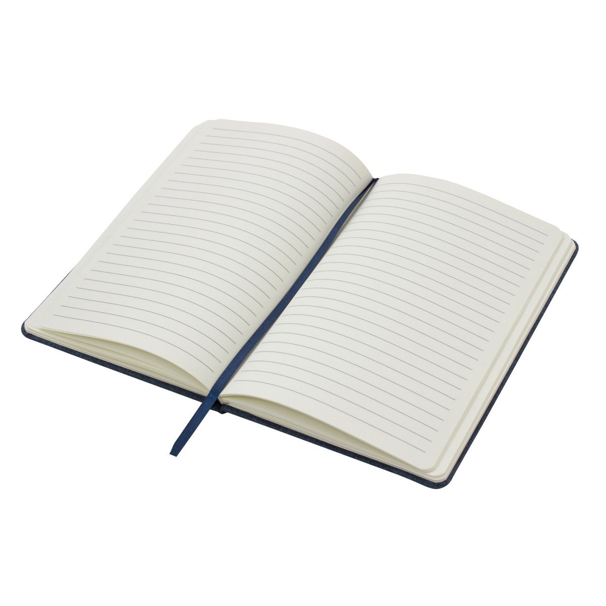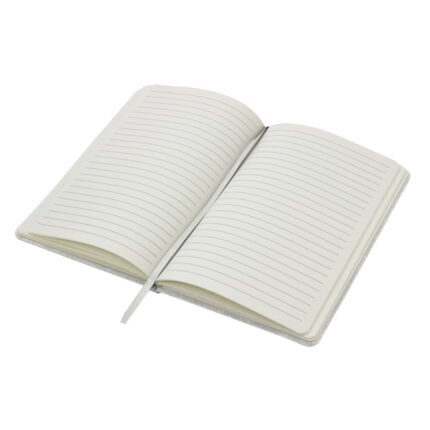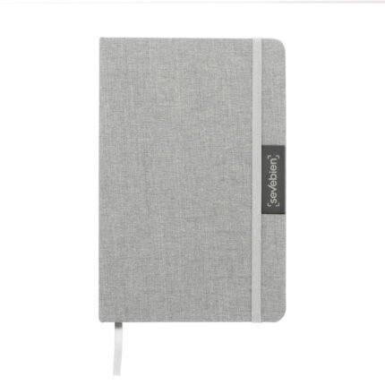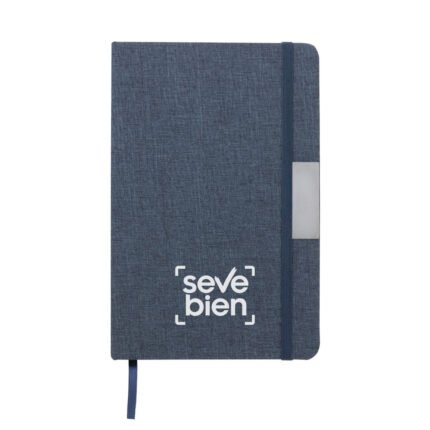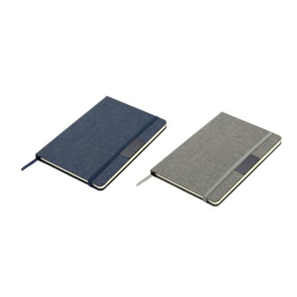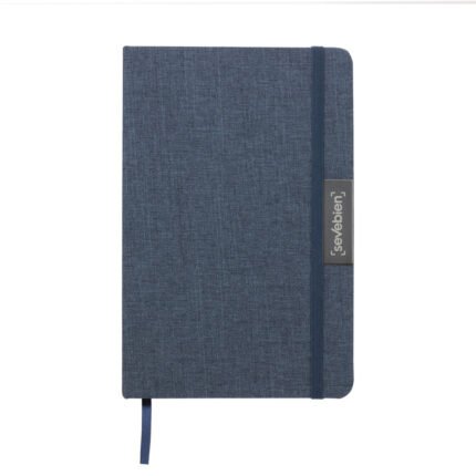 Sostenibilidad elegante.Libreta con placa metálica. Tapa de cartón de 300g recubierta en RPET 310. Placa metálica de 5 x 2 cm. Interior de 80 hojas rayadas en papel obra de 70g. Encuadernación cosida. Cierre con banda elástica del mismo color de la tapa.Medidas: 14 x 21 x 1,5 cm.