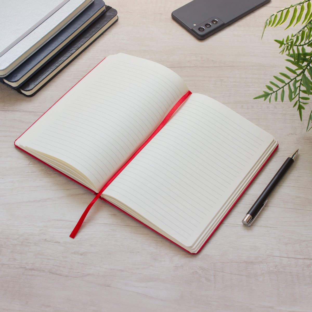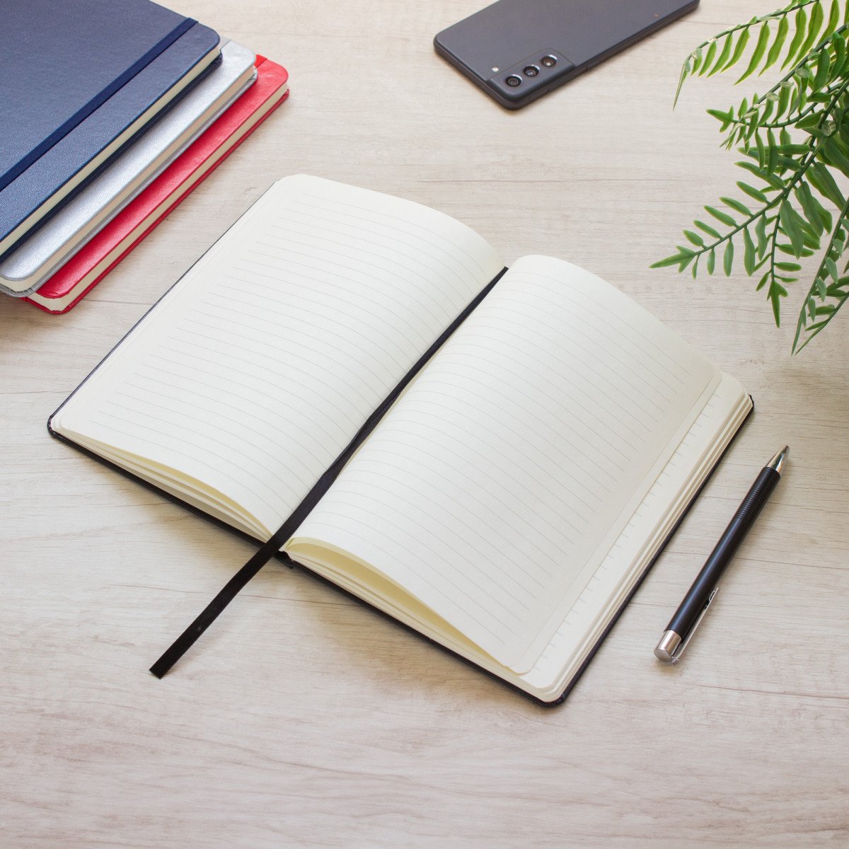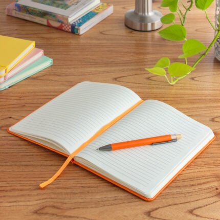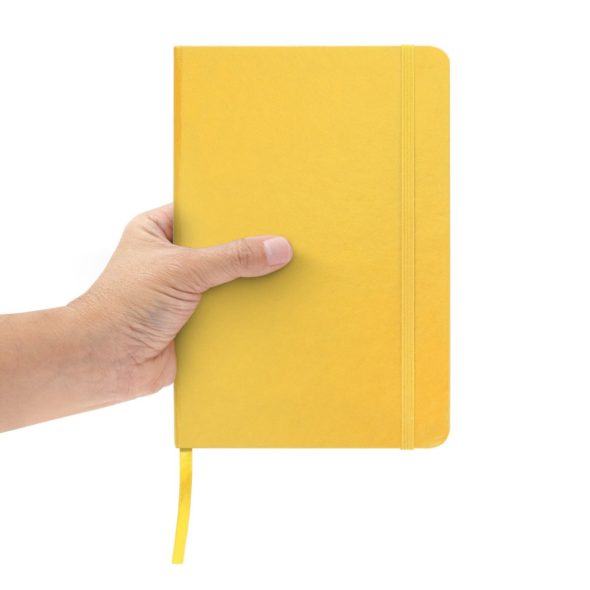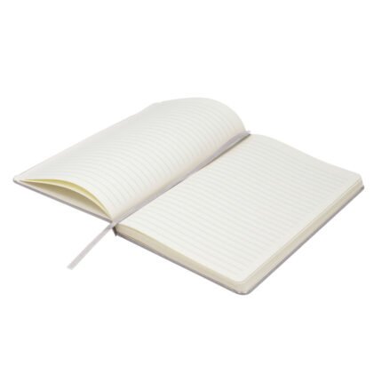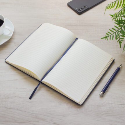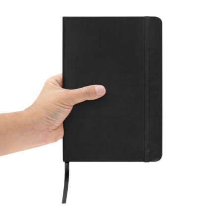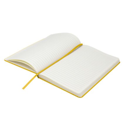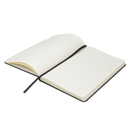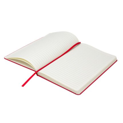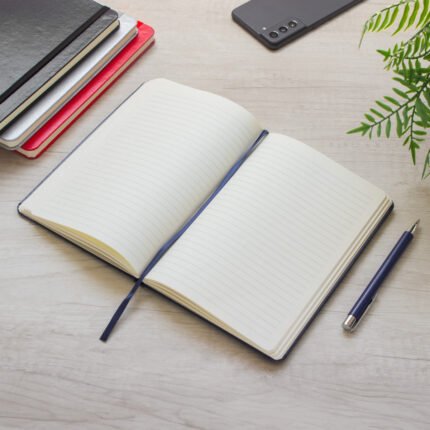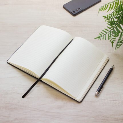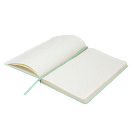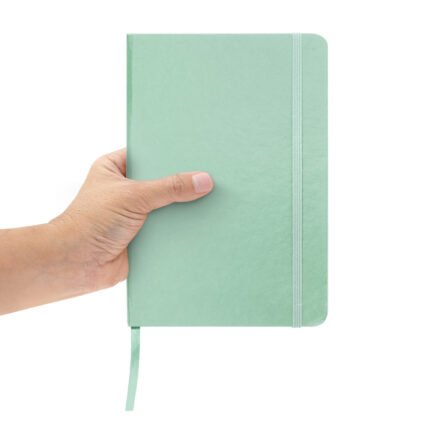 Mantén tus ideas organizadas.Libreta. Tapa de cartón de 300g recubierta en poliuretano de diferentes colores. Interior de 80 hojas rayadas en papel obra crema de 70g. Encuadernación cosida. Incluye cinta señaladora del color de la tapa. Cierre con banda elástica del mismo color.Medidas: 14 x 21 x 1,5 cm.