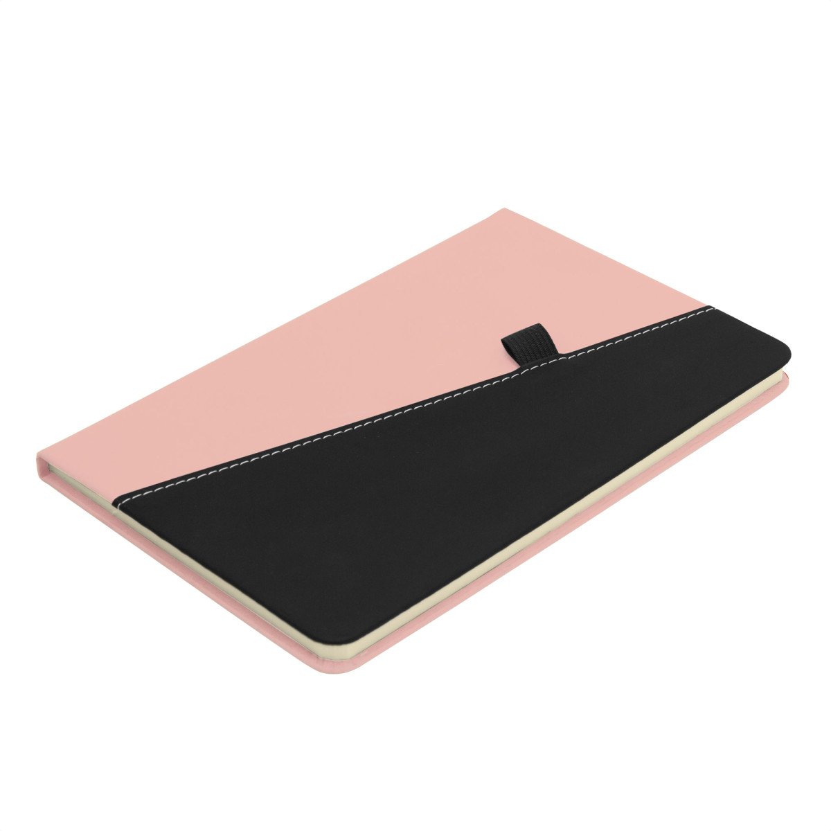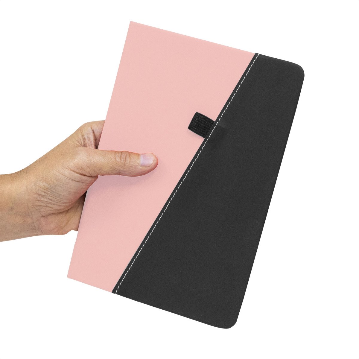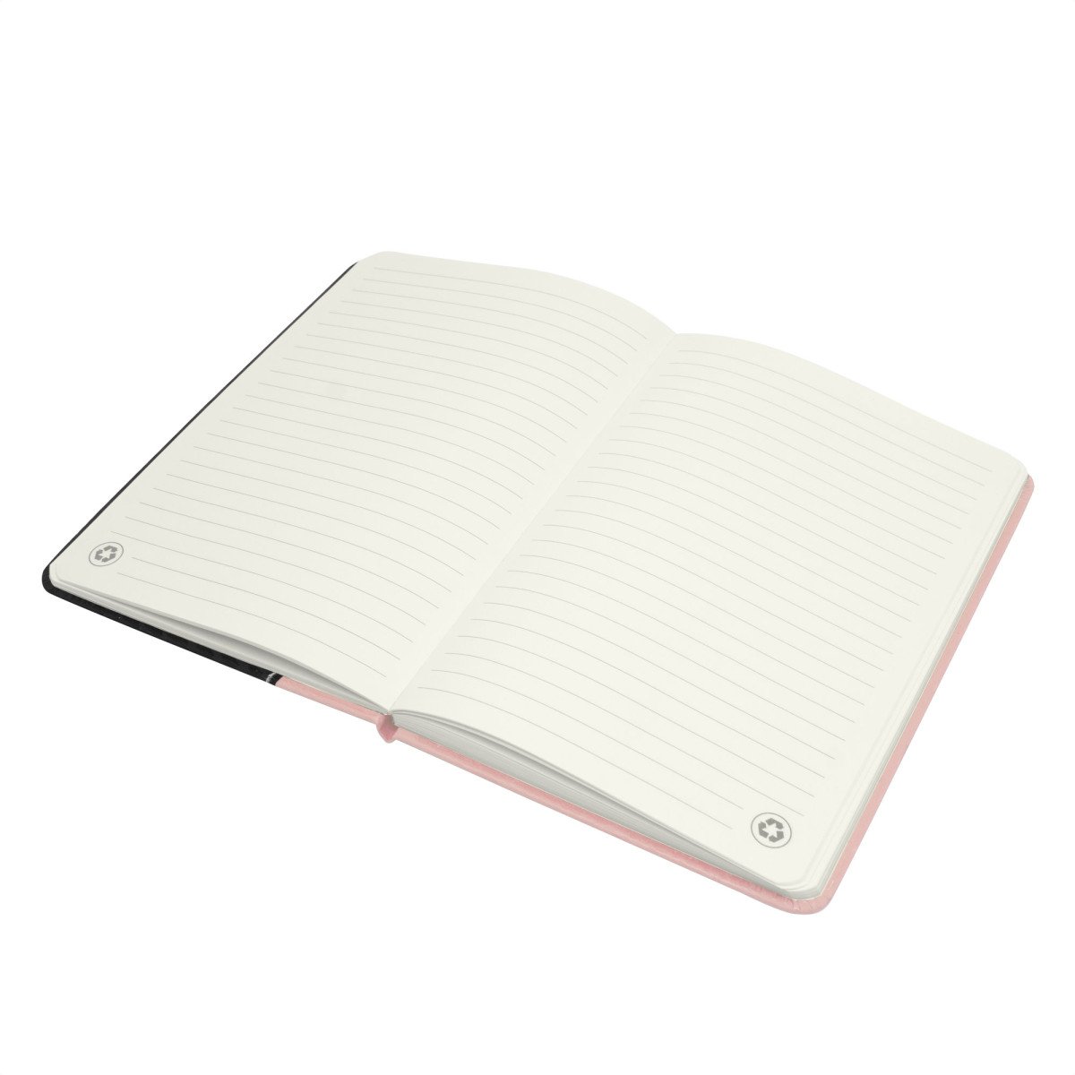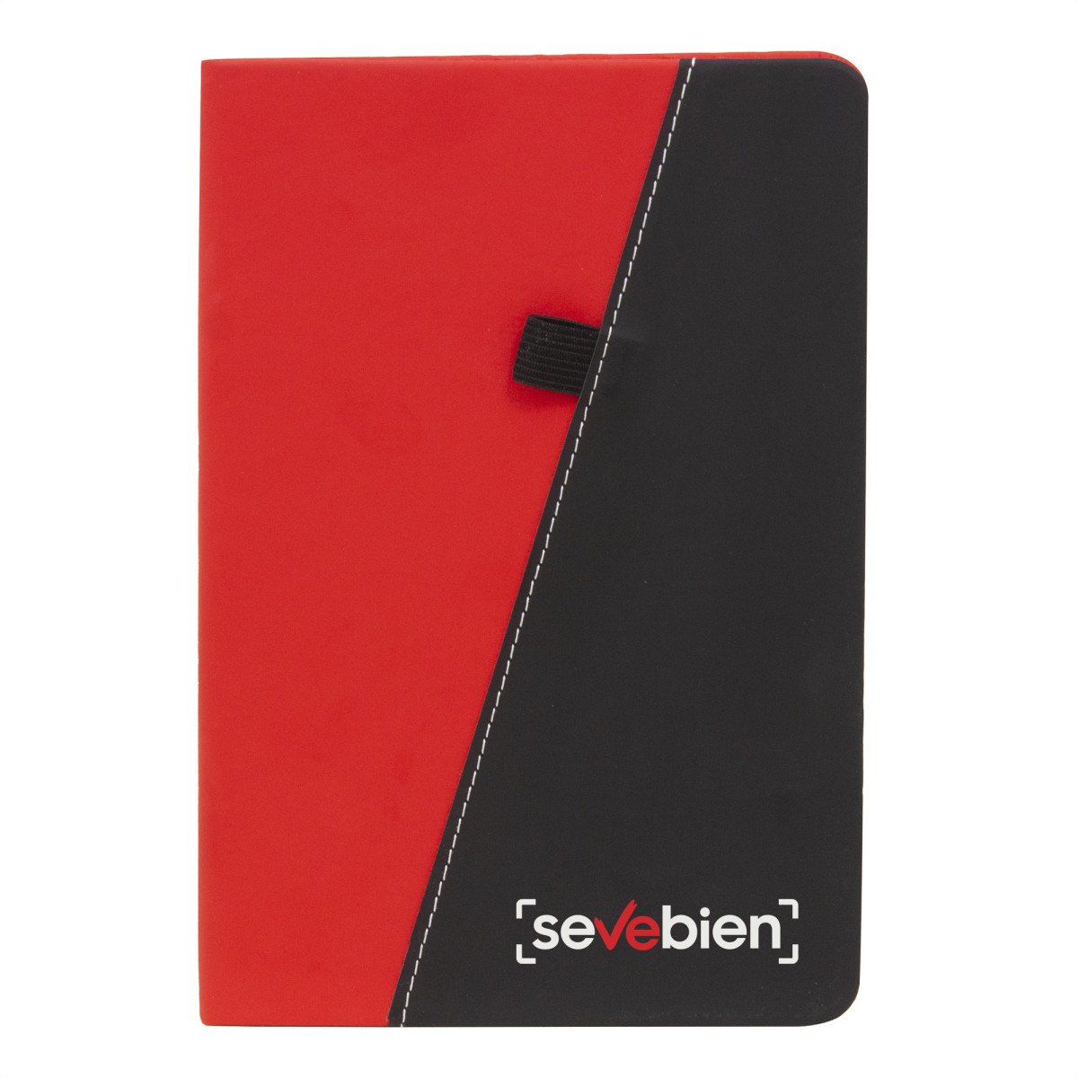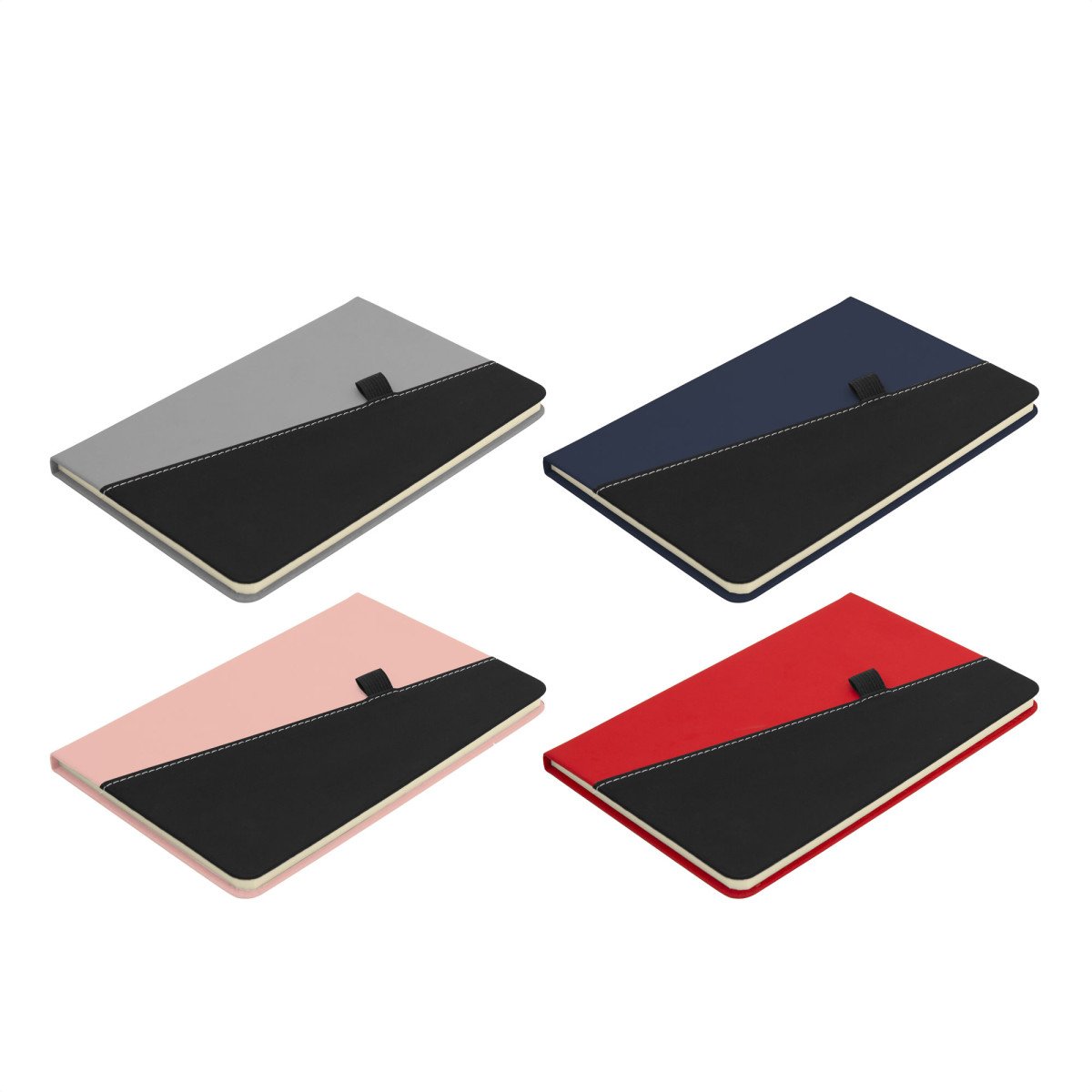 Lista para acompañar cada planLibreta. Tapa de cartón rígido recubierta en poliuretano bicolor (diferentes colores combinados con negro). Interior de 80 hojas rayadas en papel obra de 70g. Encuadernación cosida. Inlcuye portalápices elástico color negro.Medidas: 14,5 x 21 x 1,5 cm.