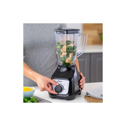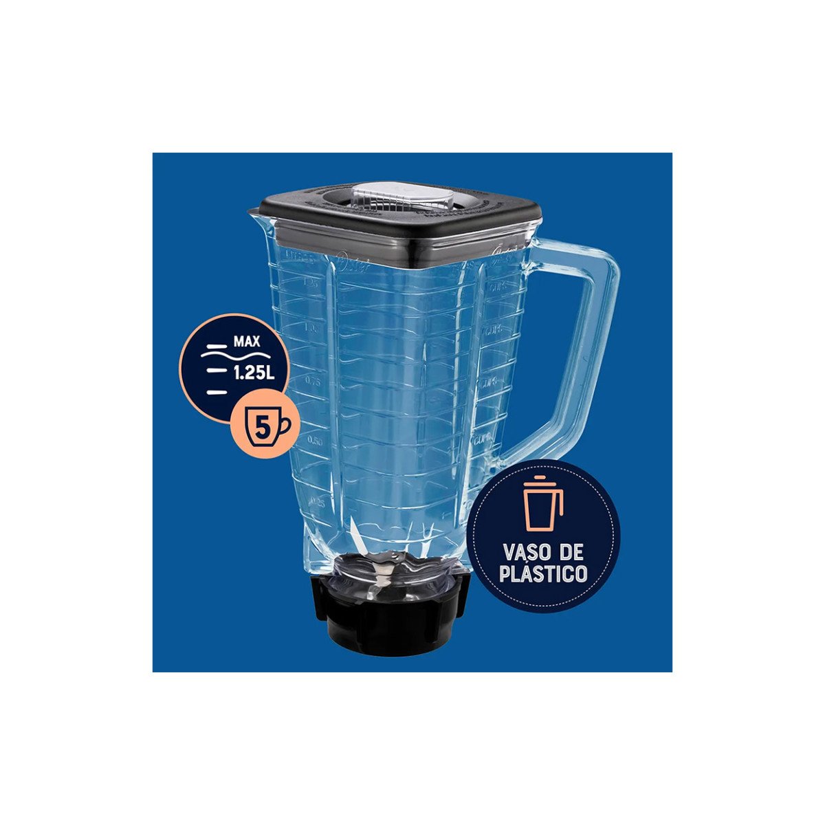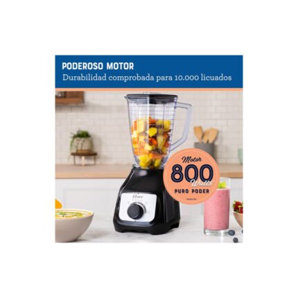La licuadora Oster® con control de perilla y su potente motor 4 veces más duradero** con 800 W de potencia* te ayuda a preparar deliciosas y saludables recetas. Con alta fuerza de torsión, acople metálico 10 veces más fuerte***, revolucionaria cuchilla trituradora de hielo y vaso de plástico es ideal para preparar una amplia variedad de recetas frías y calientes, jugos, batidos y mucho más.