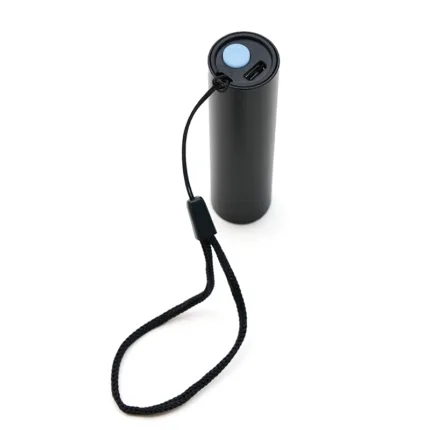 Linterna con batería recargable y banda de agarre. Fabricada a base de aluminio, dándole un peso liviano y duradero. Ideal para tener a mano en caso de no tener luz.