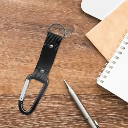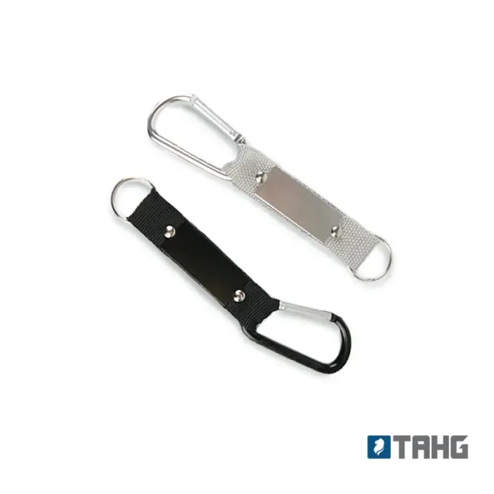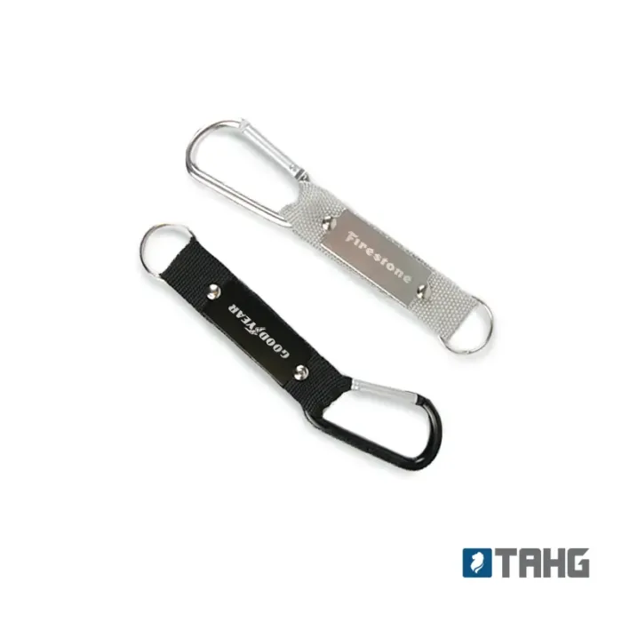 Llavero tejido de Polyester con un mosquetón de seguridad y una placa de metal para personalizar. La placa puede ser utlizada para domes o grabado láser. Medidas: 13 cm x 3,1 cm incluído el anillo (anillo de 25 mm). Tahg