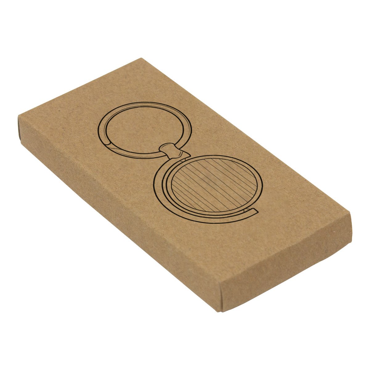 7,5 x 3,5 x 0,4 cm. Llavero circular de bambú con detalles metálicos. Estructura giratoria 360°. Presentación en caja de regalo.