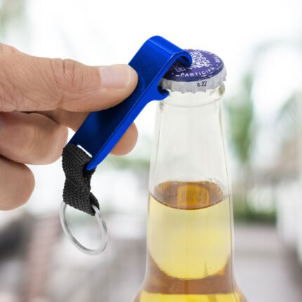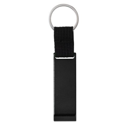 Elegante y práctico, el infaltable de bolsillo.Llavero destapador con correa de poliester color negro de 2.5 x 1.5cm. Pintura acabado brillante. Medidas: 9,5 x 1,9 cm.