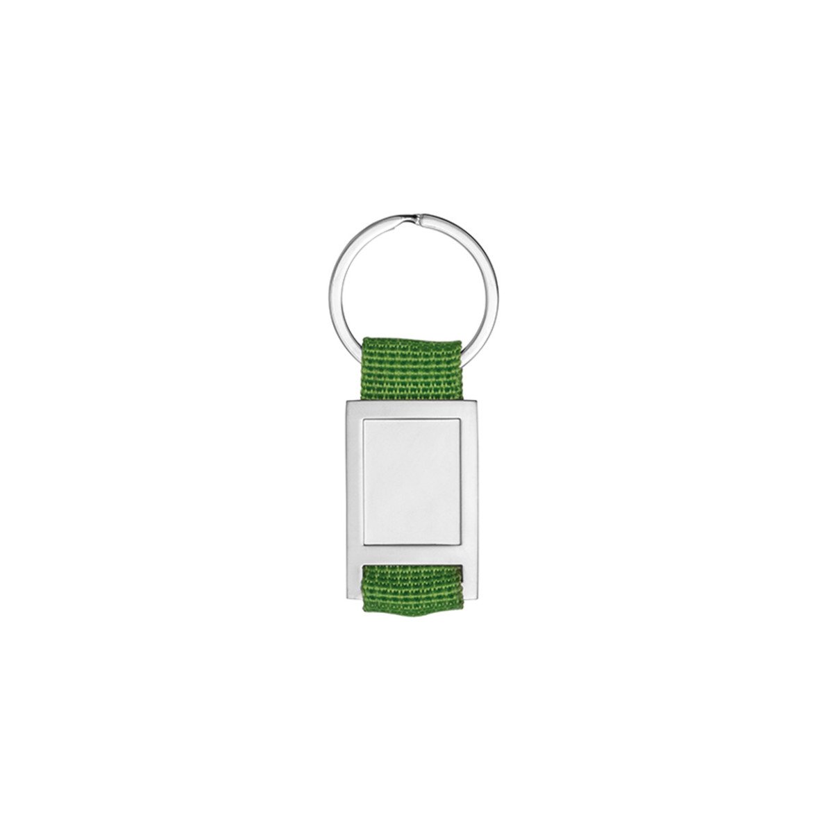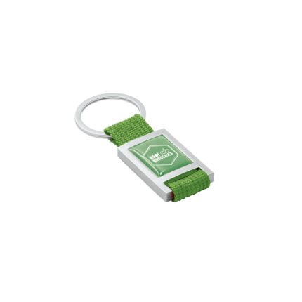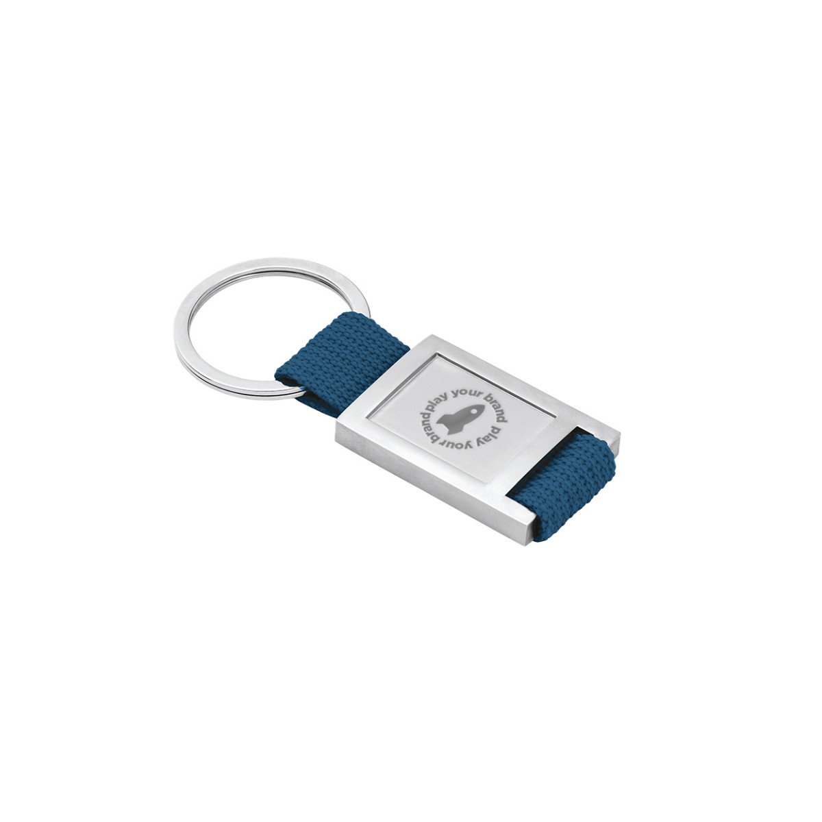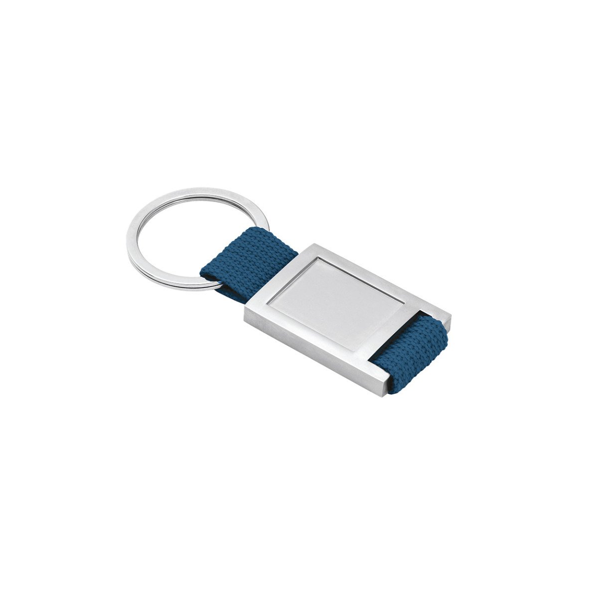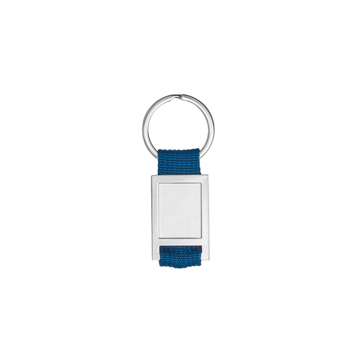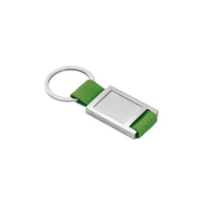 Llavero de metal y tela webbing, con superficie ideal para doming.Incluye caja de presentación.