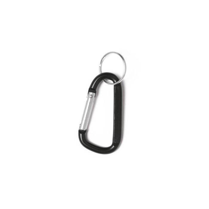 Mosquetón de aluminio con argolla para llavero y área plana para la personalización. Accesorio ideal para usar con llaveros, botellas de hidratación o vasos térmicos, etc. No es apto para practicar escalada.