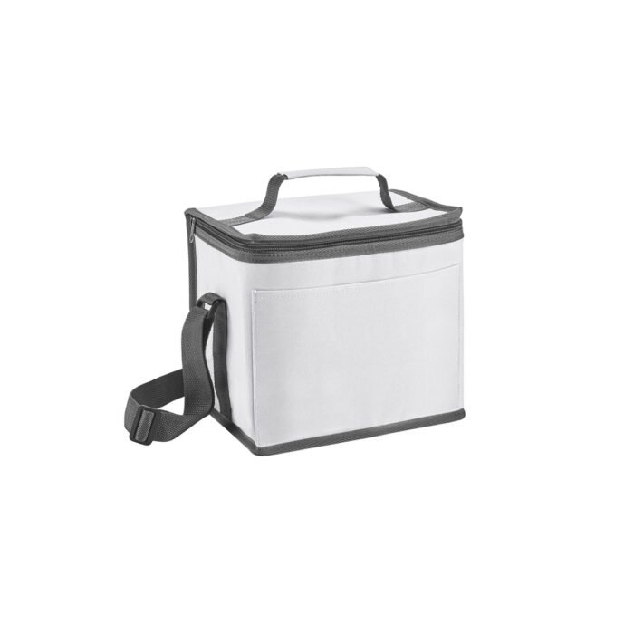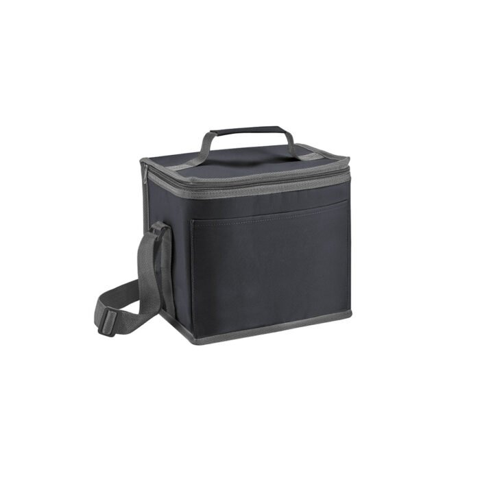 Lunchera con correa ajustable y bolsillo frontal. Fabricada en poliéster 600D. Interior de aluminio y PE Foam. Ideal para llevar a la playa. Capacidad: 9L