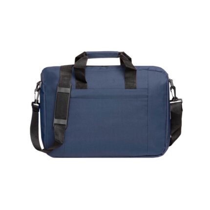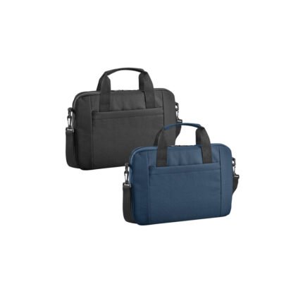 Maletín para notebook de hasta 15,6″, fabricado en poliéster 600D. Cuenta con un compartimento con separación para la notebook, con interior forrado y acolchado. Incluye bolsillos interiores y un bolsillo en la parte delantera con cierre. Tiene cinta ajustable con refuerzo.