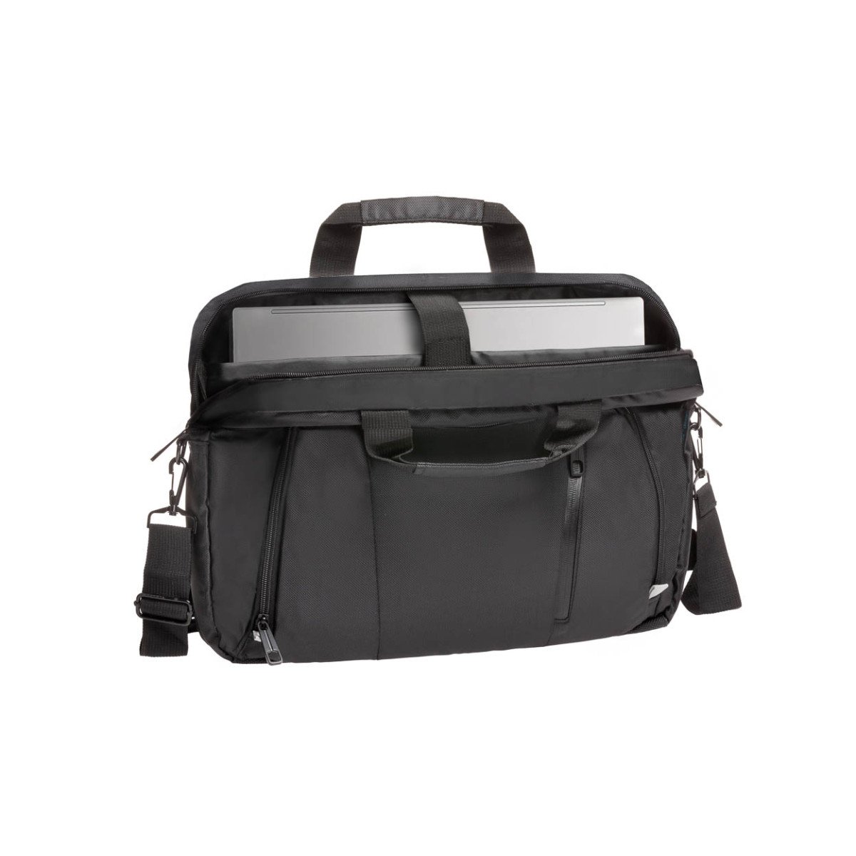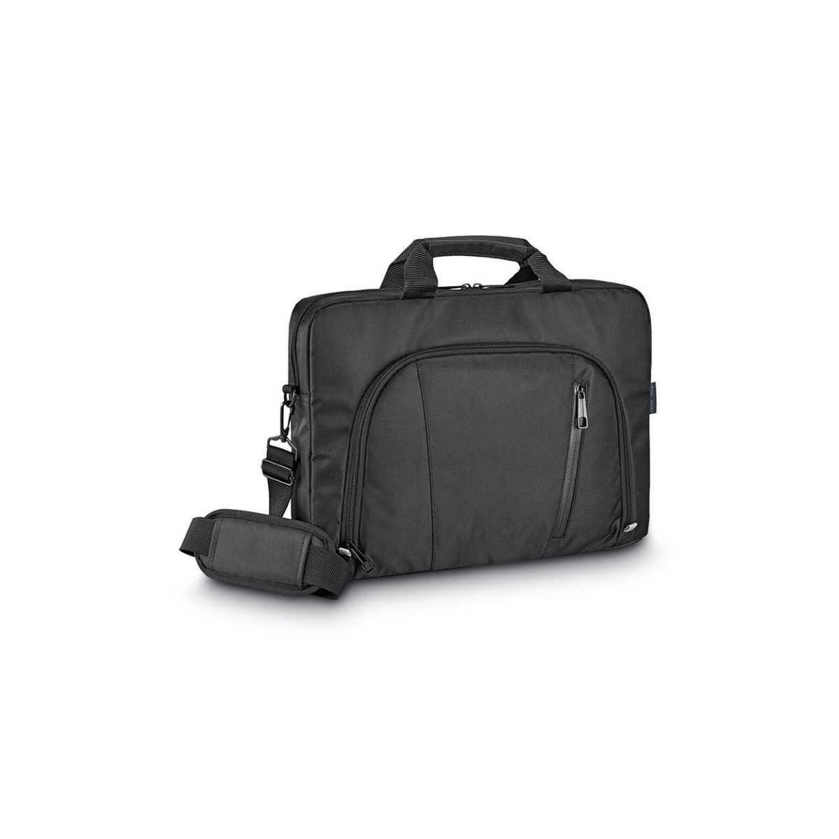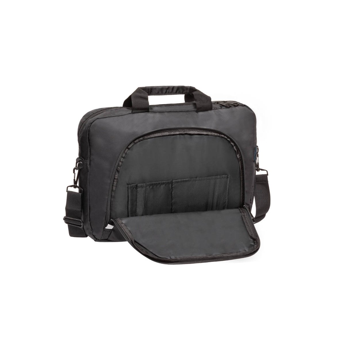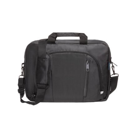 Maletín para notebook de hasta 15,6″, fabricado en poliéster 840D. Con compartimento separador para notebook con interior forrado. Contiene dos bolsillos principales y múltiples bolsillos interiores.