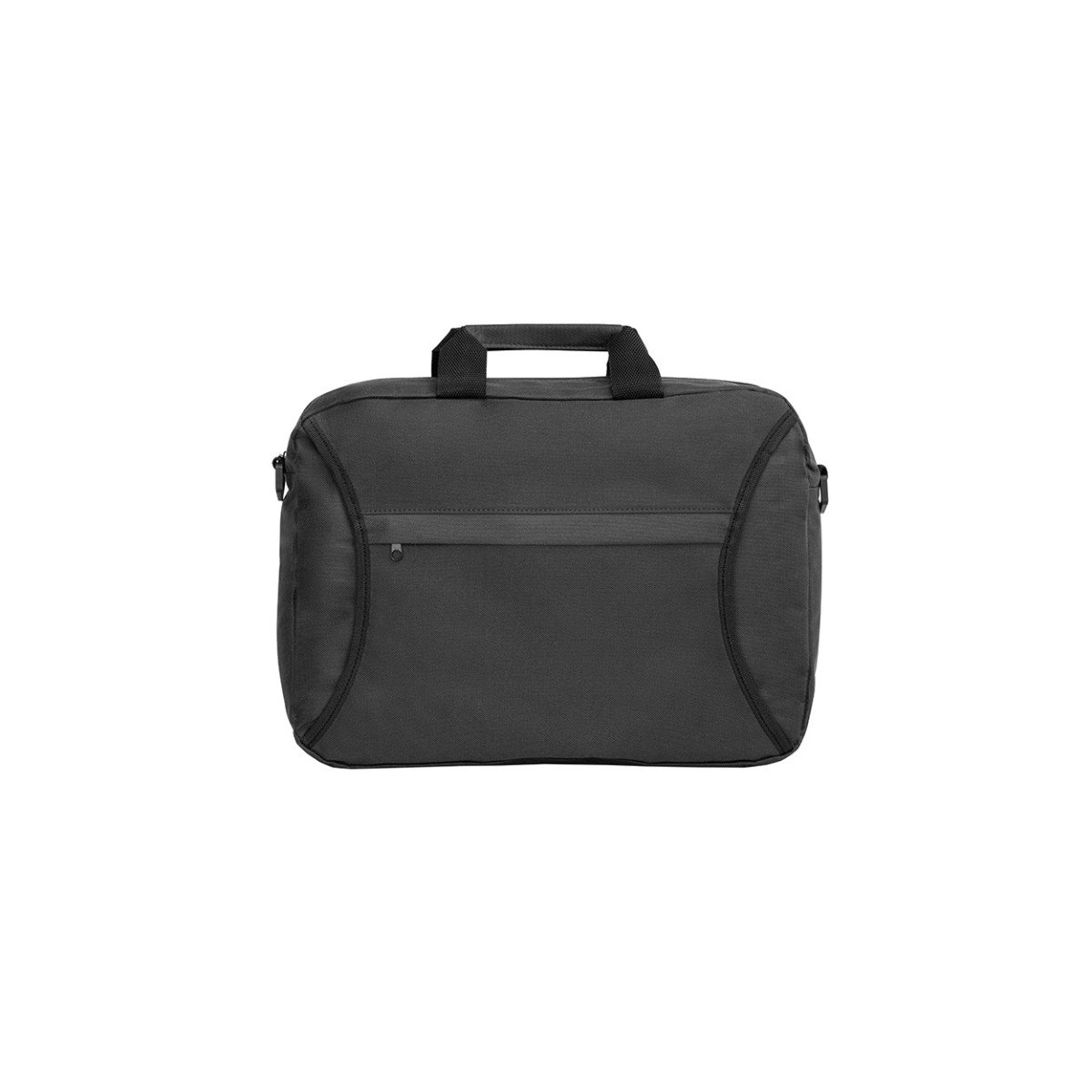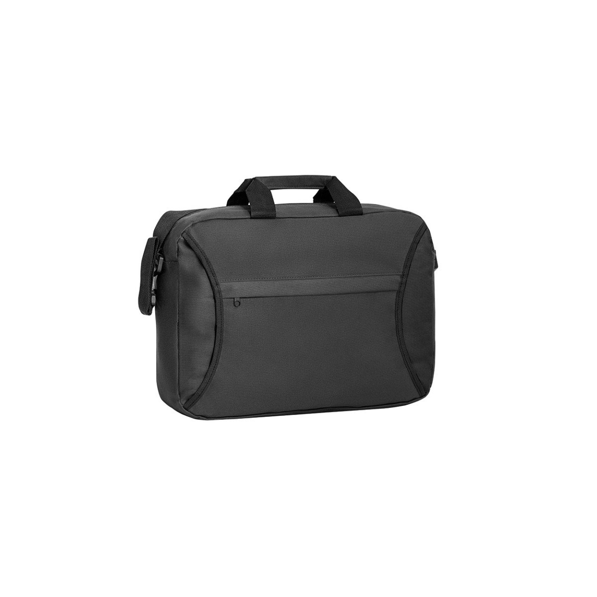 Maletín fabricado en poliéster 600D. Con manijas, correa ajustable y un compartimiento exterior abierto forrado con bolsillo frontal con cierre.