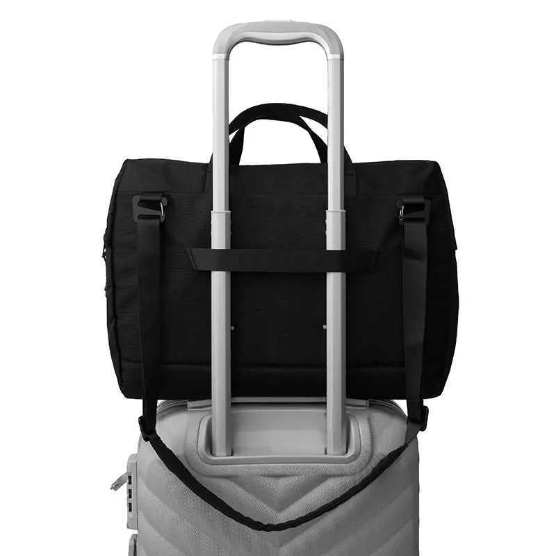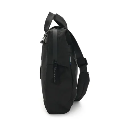 Maletín para ordenador fabricado con OceanGuard™, un tejido resistente elaborado a partir de plástico oceánico reciclado con certificación OceanCycle. Cuenta con funda acolchada para laptop de hasta 16″, bolsillo interior y frontal ambos con cierre, correa para maletas con ruedas y correa para el hombro extraíble incluida. Es ideal para desplazamientos diarios, trabajo remoto o transporte diario, ya que es ligero, duradero y resistente al agua, creado para ayudar a proteger nuestros océanos.