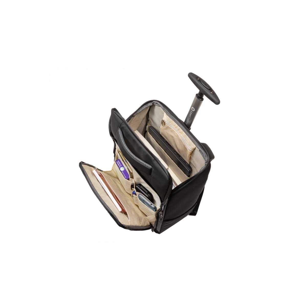 Con superficie engomada Waterproof, se convierte fácilmente en mochila o carrito, para mayor practicidad según la necesidad. Apertura de 90° y cierres sellados anti-filtración. Porta notebook de hasta 17”. Capacidad: 30 litros.