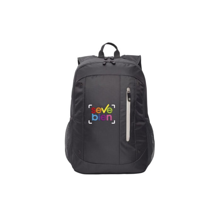 32 x 47 x 17 cm. Capacidad 25 litros aprox. Jacquard Poliéster 420D. Mochila portanotebook. Dos compartimentos con cierre. Compartimento principal con división acolchada porta notebook de hasta 16” con bolsillo y el segundo con tres espacios contenedores. Bolsillo frontal con cierre en color y dos bolsillos de red laterales. Cierres metálicos con tiradores de goma con detalles de color. Correas regulables y espalda acolchadas.