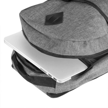 Mochila confeccionada en Polycanvas. Correas acolchadas ajustables, doble cremallera. Compartimiento principal acolchado para alojar notebook. Espaldar acolchado. Capacidad 17 Lts. Notebook: 15,6`. Tahg 24.