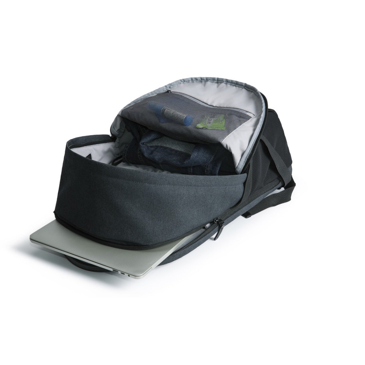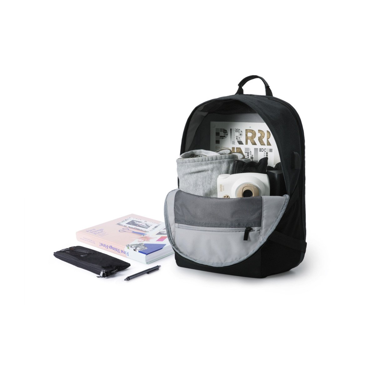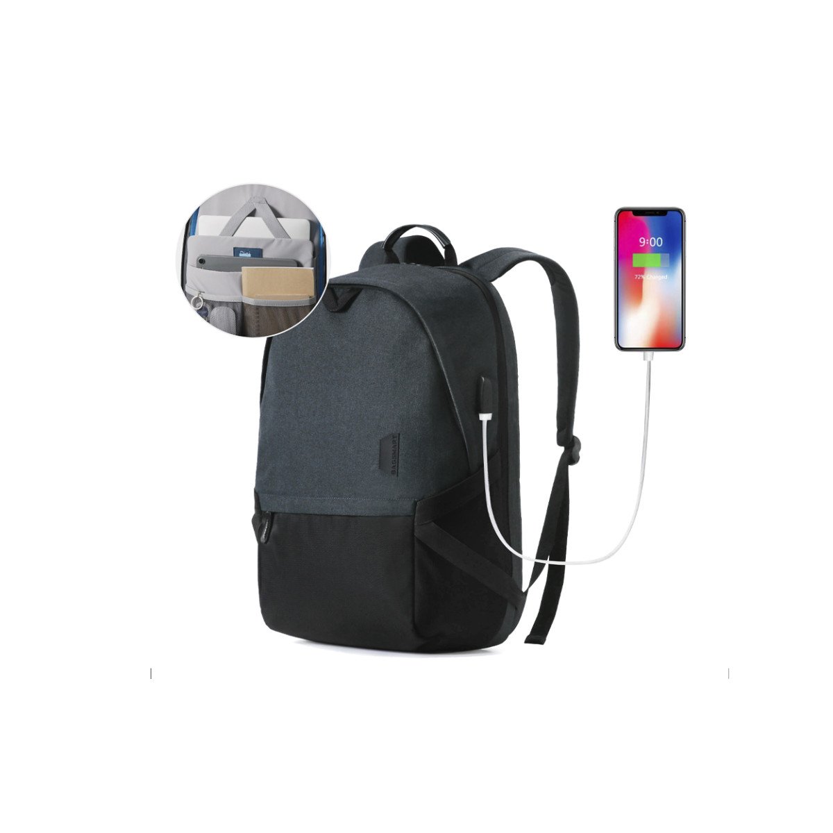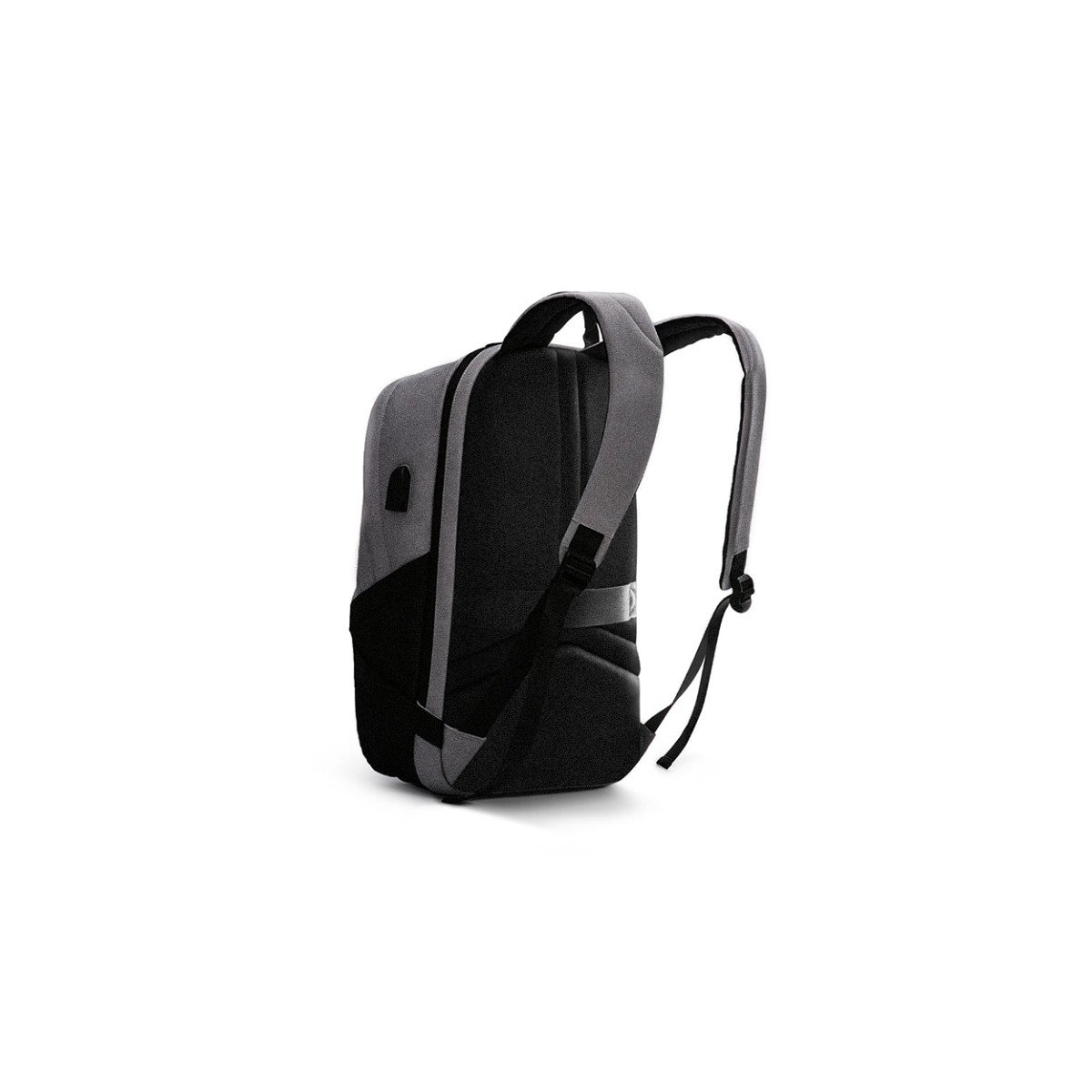 Políester 300D resistente al agua. + RPET (material reciclable), combina el color nego y azul oscuro. Múltiples compartimentos, incluye espacio porta notebook hasta 15.6″ Compartimiento especial RFID, impide que ciertas ondas electromagnéticas puedan penetrar en las tarjetas de crédito/débito que guardamos dentro dentro del mismo. Correa trasera para enganchar a la valija. E-zone es un compartimiento especialmente diseñado para proteger la notebook y accesorios digitales, cuenta con espuma EVA que protege en caso de caída. Capacidad 20L