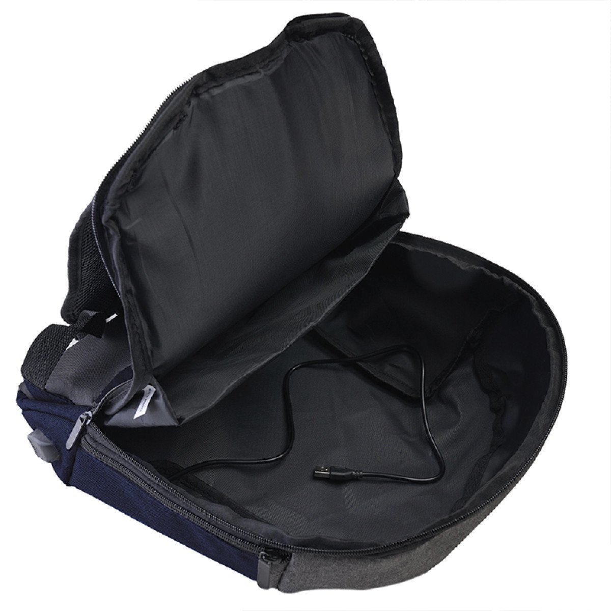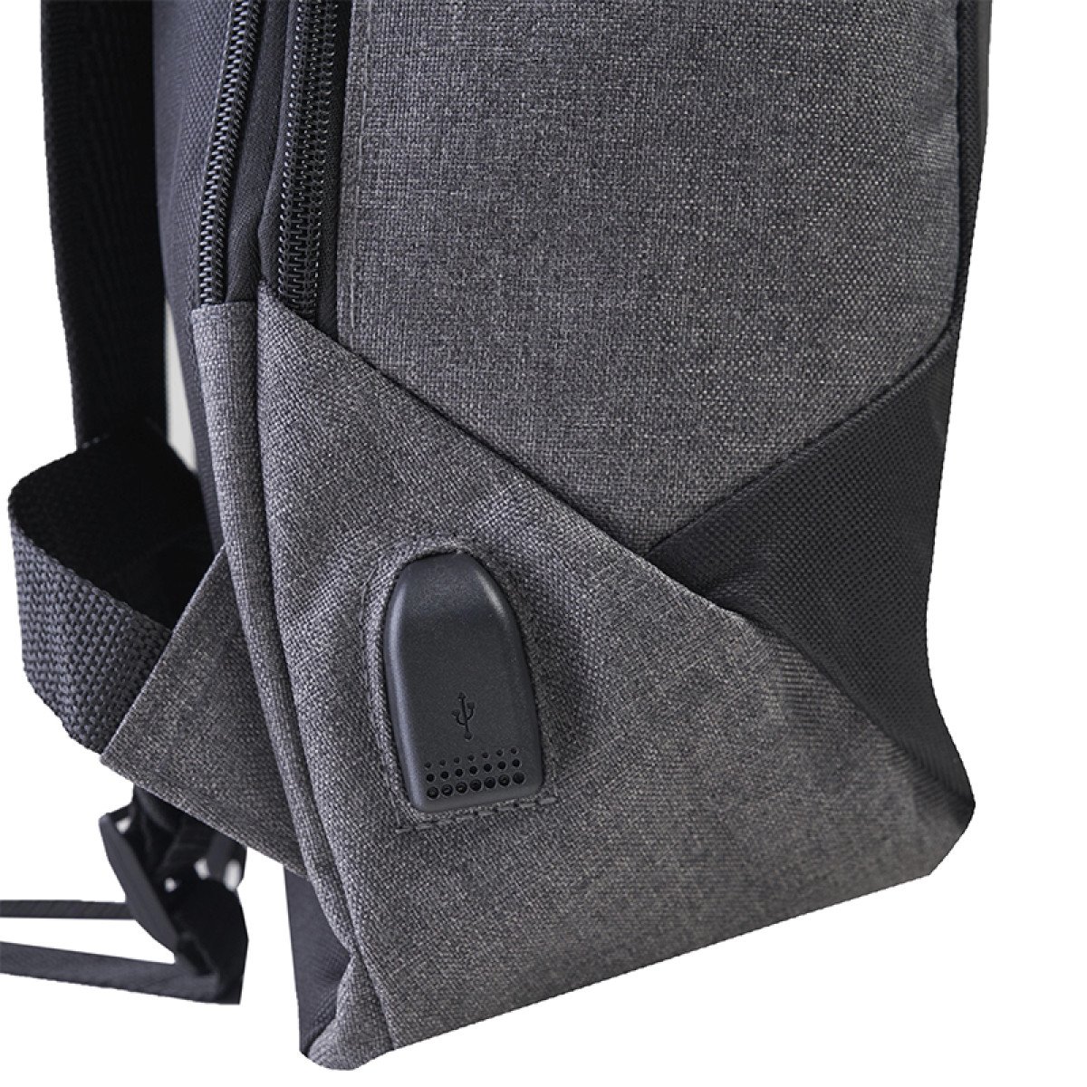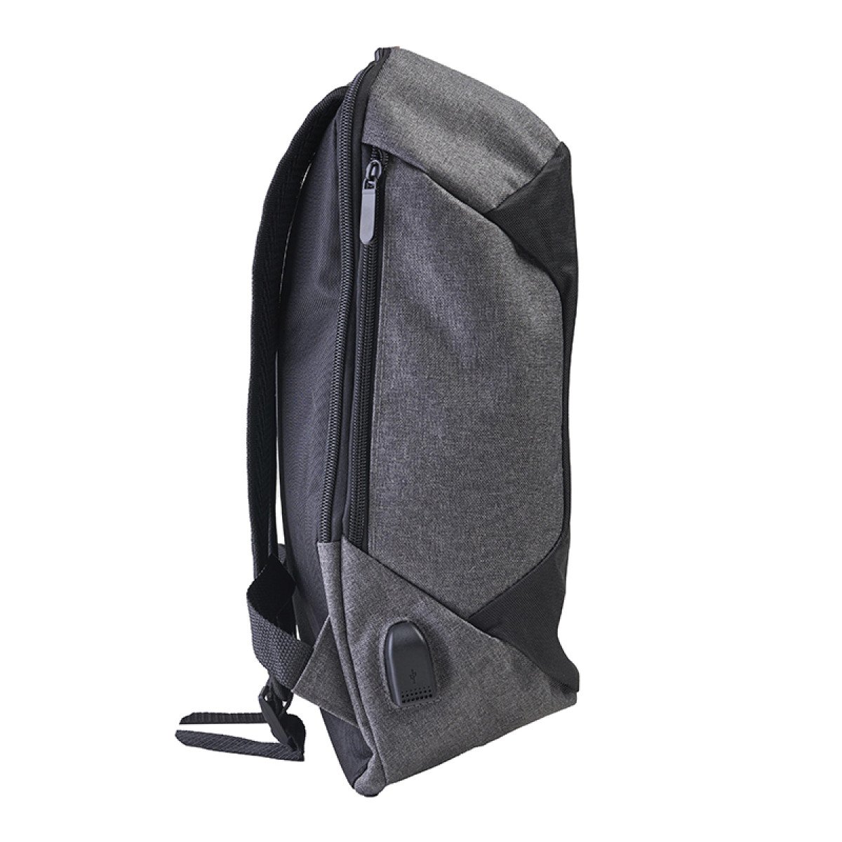Realizada en Polyester. Cierre principal de seguridad oculto en el espaldar. Compartimiento portanotebook protegido y puerto USB para cargar dispositivos.