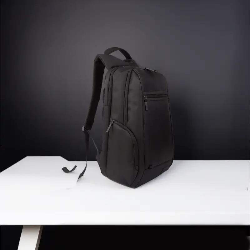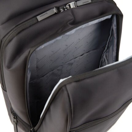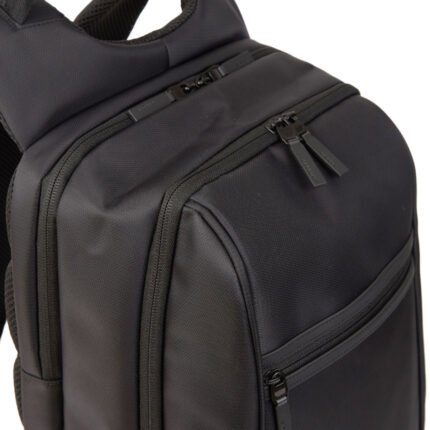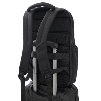Mochila confeccionada en Nylon Jacquard con cierres en tono y cabezal metálico color negro. Cuenta con un compartimiento primario con tres bolsillos internos para guardar el celular, llaves o billetera y, un compartimiento secundario porta notebook. Posee también dos bolsillos laterales, uno frontal y, uno trasero (todos con cierre). Espalda y correas regulables acolchonadas. Esta mochila es ideal para llevar tu portátil al trabajo, de viaje o donde necesites para estar siempre online. Dimensiones: 47,5 x 31 x 16,5 cm (Alto x Longitud x Ancho). Capacidad: 24 lts. Cardon.