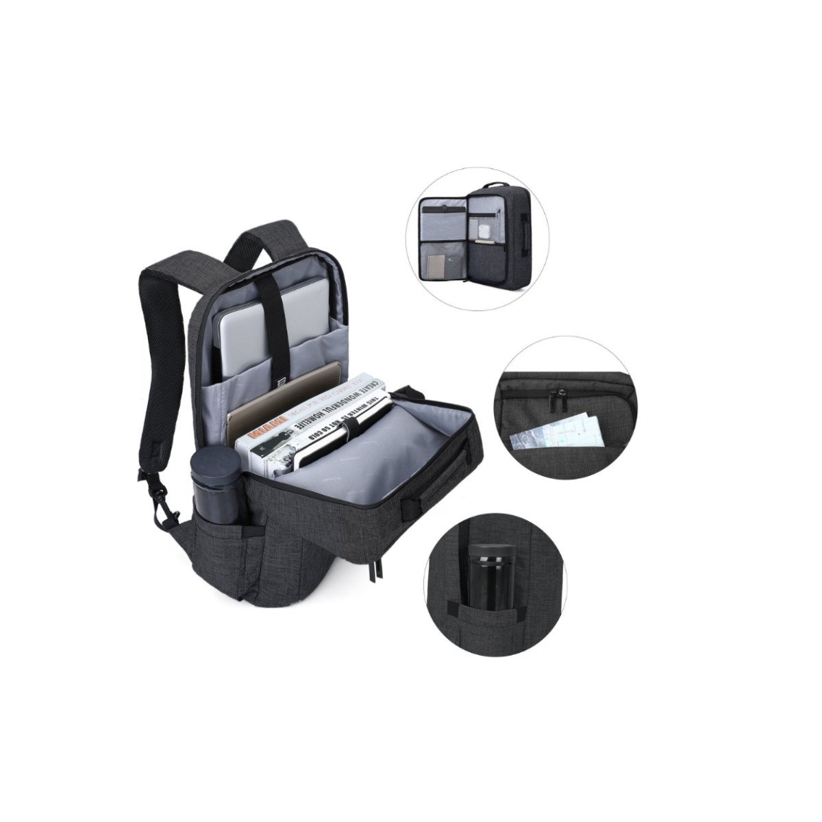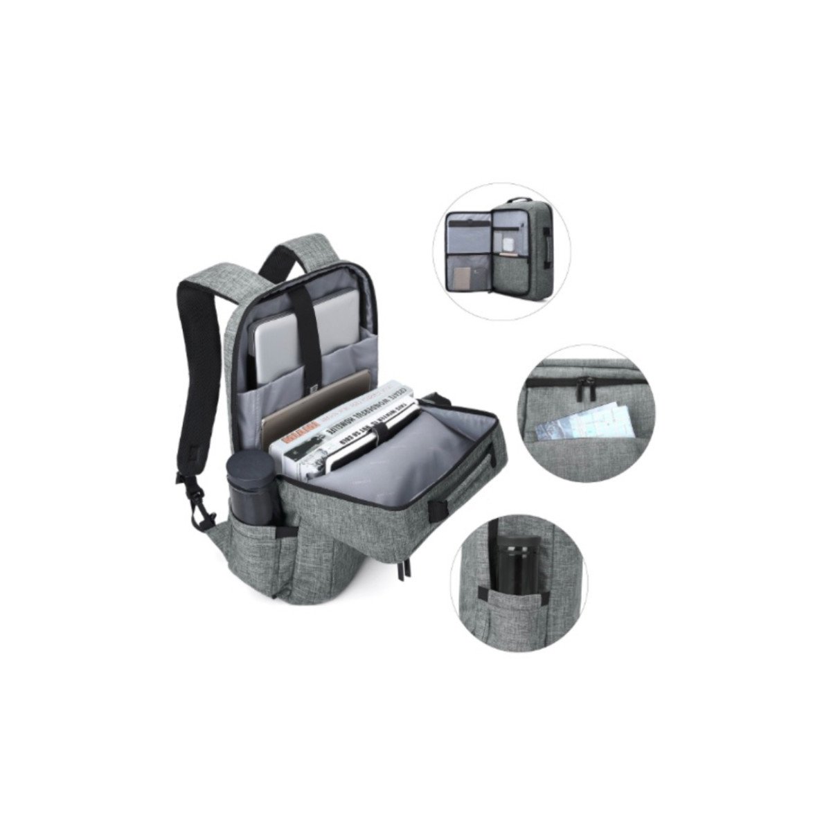 Uso bidireccional: las correas acolchadas para los hombros se pueden ocultar en el bolsillo trasero, cuando se usa como maletín. Porta notebook hasta 15.6″ Resistente al agua. Múltiples compartimentos. Con espuma antichoque para prevenir los impactos y proteger el interior. Poliéster 300D. Capacidad 18L