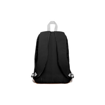 30 x 45,5 x 14 cm. Capacidad 16 litros aprox. Poliéster 600D y PU. Mochila con bolsillo frontal con cierre de apertura vertical. Correas ajustables y espalda acolchadas. Tiradores de cierre y detalles en la parte inferior en material PU color marrón.