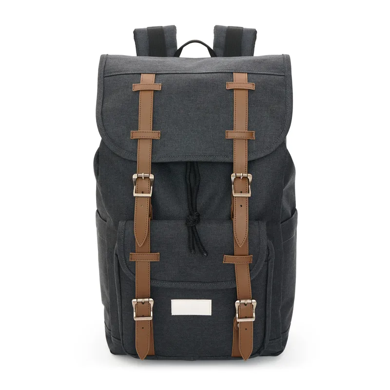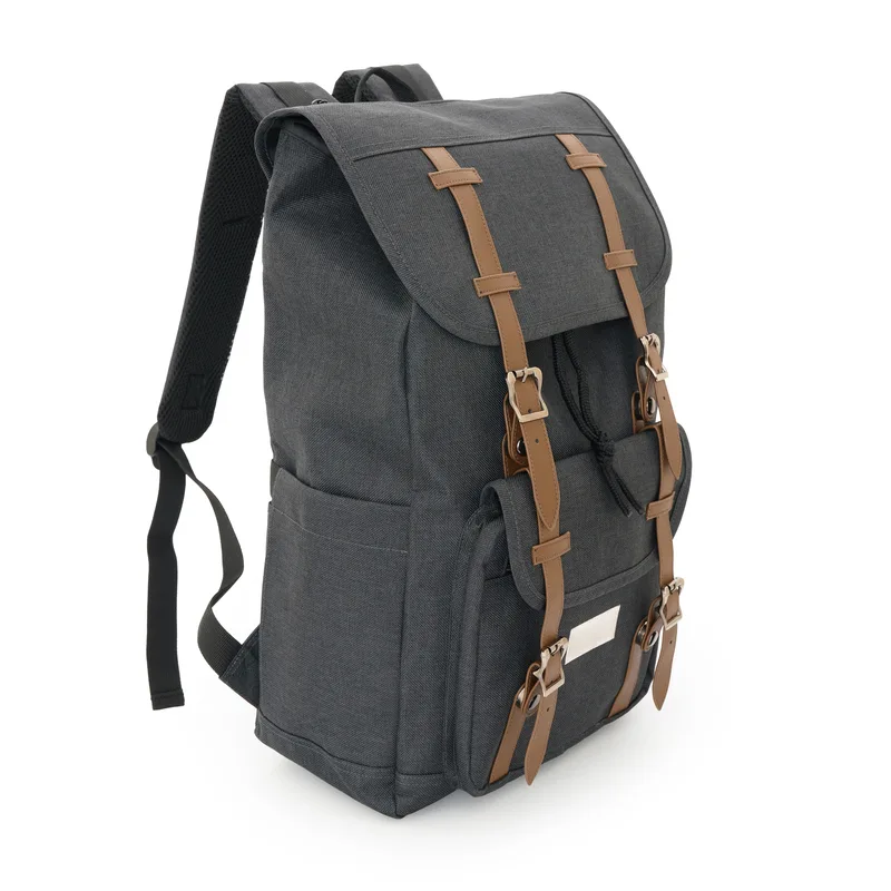 Mochila urbana con correas ajustables Hecha de poliéster y cuero PU. Cuenta con cierre con solapa y hebillas, tiras acolchadas ajustables, bolsillos frontales y capacidad de 18 litros. Es ideal para llevar tus pertenencias al trabajo, universidad o salidas diarias con comodidad.