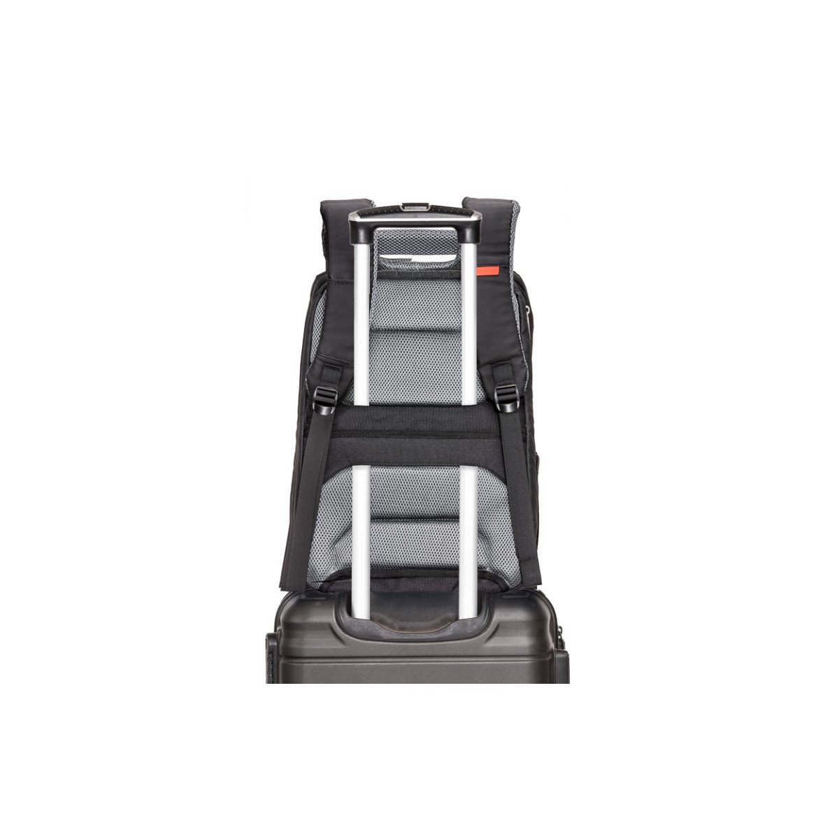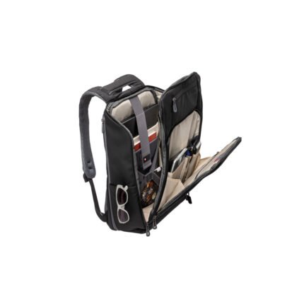 Con superficie engomada Waterproof, apertura de 90°, cierres sellados anti-filtración y porta notebook de hasta 15,6”. Base resistente a golpes. Tira trasera para enganchar a la valija carry on. Bolsa para guardar ropa o calzado. Capacidad expandible de 25 a 30 litros.