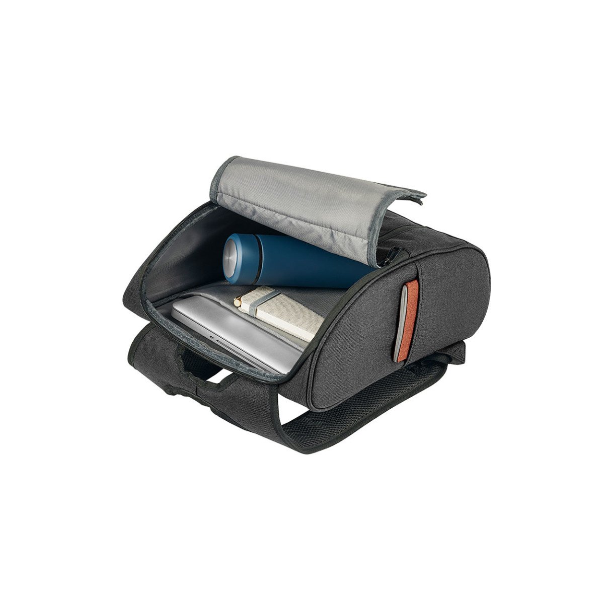 Mochila portanotebook, con 2 divisiones acolchadas: para notebook de hasta 15,6″ y para tablet de hasta 9,7″. Respaldo y correas acolchadas. Capacidad: 14L.
