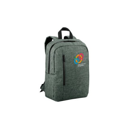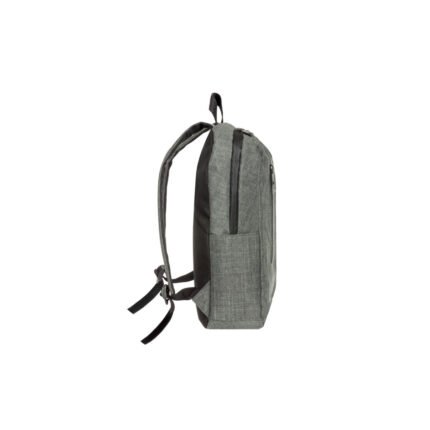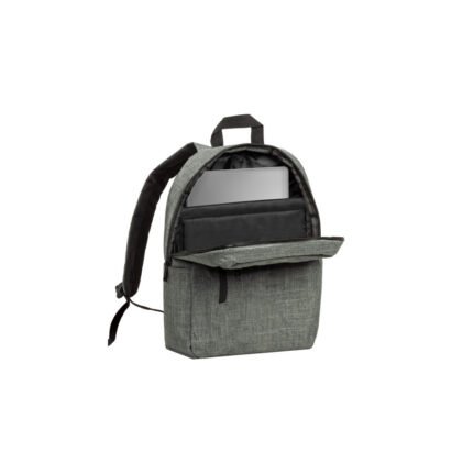 Mochila portanotebook fabricada en poliéster 600D de alta densidad. Compartimiento forrado, con 2 divisiones acolchadas para notebook de hasta 14» y tablet 9.7». Con bolsillo frontal y bolsillo lateral. Cuenta con espalda y tiras acolchadas. Capacidad: 13,5L.